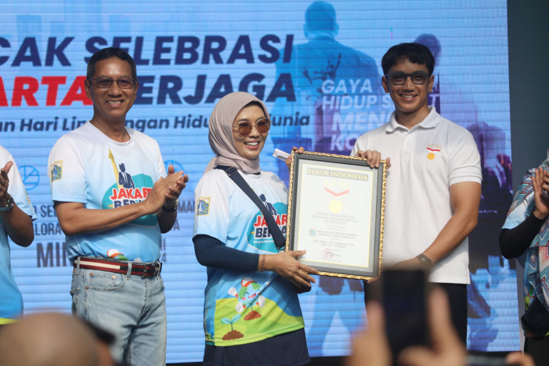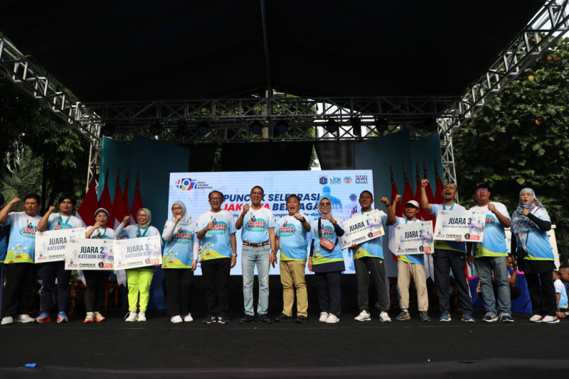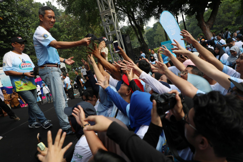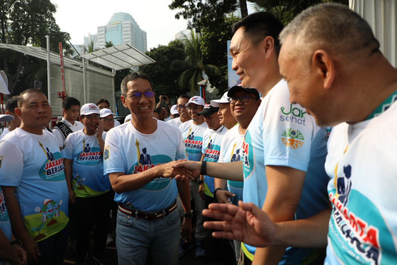 Pj Gubernur DKI Jakarta , Heru Budi Hartono menghadiri puncak acara Gerakan Jakarta Bergerak, Bekerja, Berolahraga dan Bahagia (Berjaga) serta Puncak Peringatan Hari Lingkungan Hidup Sedunia 2024 di kawasan Gelora Bung Karno (GBK) Senayan, Minggu (9/6). Kegiatan ini diinisiasi Dinas Kesehatan bersama Dinas Lingkungan Hidup ini, dihadiri 5.246 peserta.