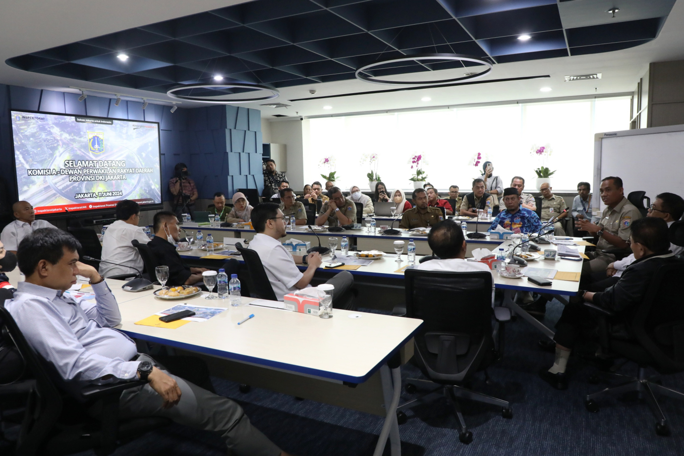 Komisi A DPRD DKI Jakarta melakukan kunjungan kerja (Kunker) ke Kantor Inspektorat Provinsi DKI Jakarta Grha Ali Sadikin, Balai Kota DKI Jakarta, Selasa (11/6). Dalam kunjungan ini Ketua Komisi A DPRD DKI Jakarta, Mujiono cukup puas dan mengapresiasi kinerja Inspektur DKI Jakarta.