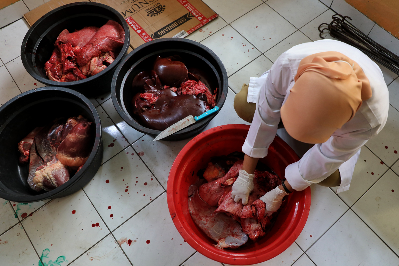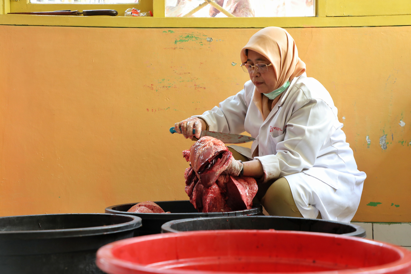 Satuan Pelaksana Ketahanan Pangan Kelautan dan Pertanian (Satpel KPKP) Kecamatan Mampang Prapatan melakukan pemeriksaan daging hewan kurban Hari Raya Iduladha 1445 Hijriah di Masjid Riadhul Abidin, Pela Mampang, Mampang Prapatan, Jakarta Selatan, Senin (17/6). Pemeriksaan ini bertujuan untuk memastikan daging kurban sehat dan bebas dari penyakit serta aman dikonsumsi. #iduladha2024