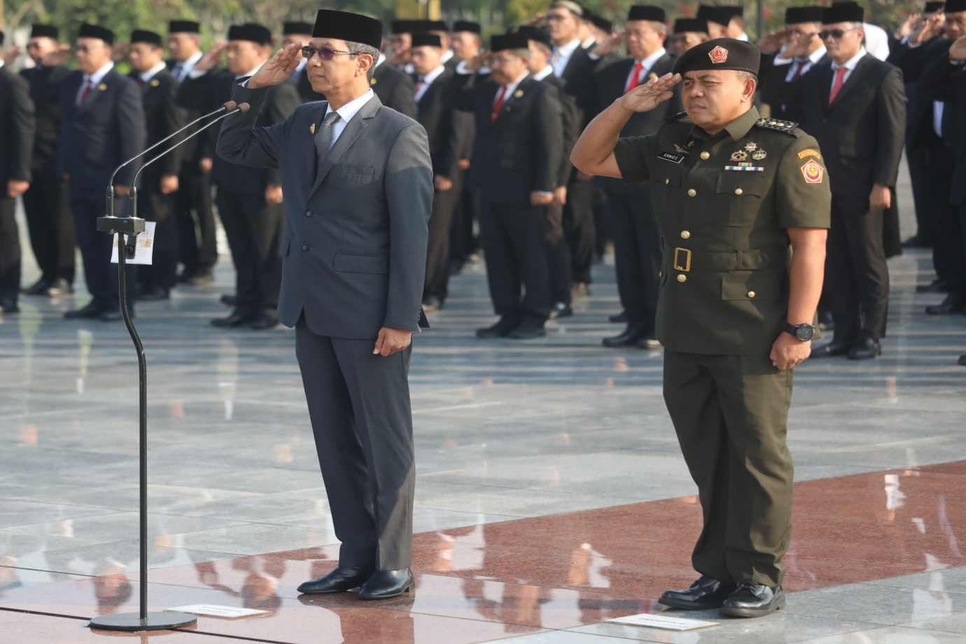 Penjabat (Pj) Gubernur Provinsi DKI Jakarta, Heru Budi Hartono memimpin upacara dan ziarah di Taman Makam Pahlawan (TMP) Kalibata, Jalan Raya Kalibata, Pancoran, Jakarta Selatan, Rabu (19/6). Kegiatan upacara dan ziarah ini dalam rangka menyambut Hari Ulang Tahun (HUT) DKI Jakarta ke-497 pada 22 Juni mendatang. #hutjakarta2024