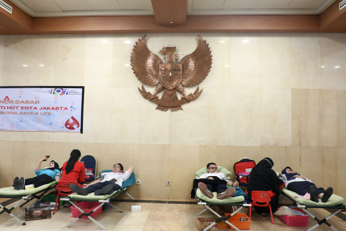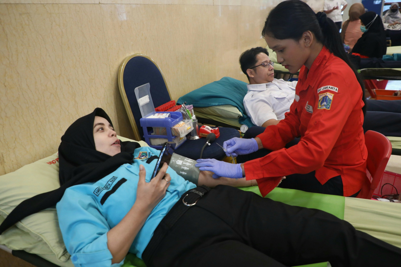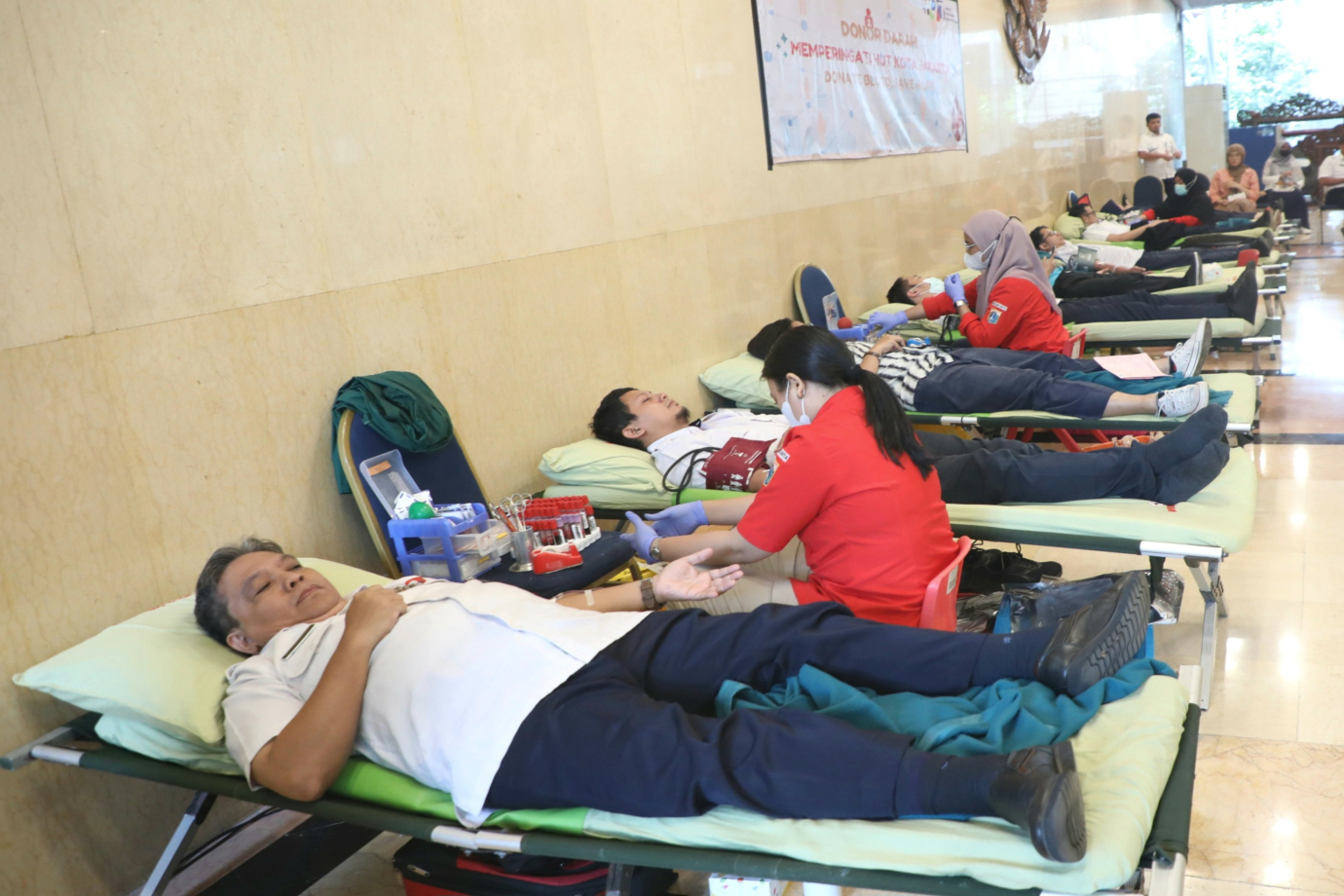 Pemerintah Provinsi DKI Jakarta melalui Badan Kepegawaian Daerah (BKD) bersama Palang Merah Indonesia (PMI) DKI Jakarta menggelar kegiatan donor darah di Balai Pertemuan Grha Ali Sadikin, Balai Kota DKI Jakarta, Gambir, Jakarta Pusat, Rabu (19/6). Kegiatan ini digelar selama dua hari yakni 19-20 Juni 2024 dalam rangka menyambut HUT Kota Jakarta ke-497. #hutjakarta2024