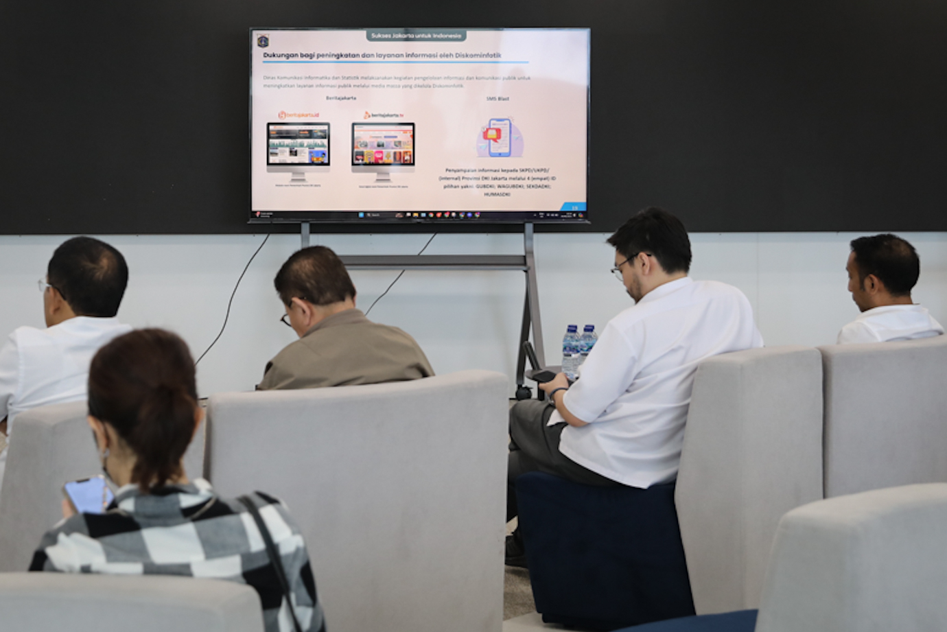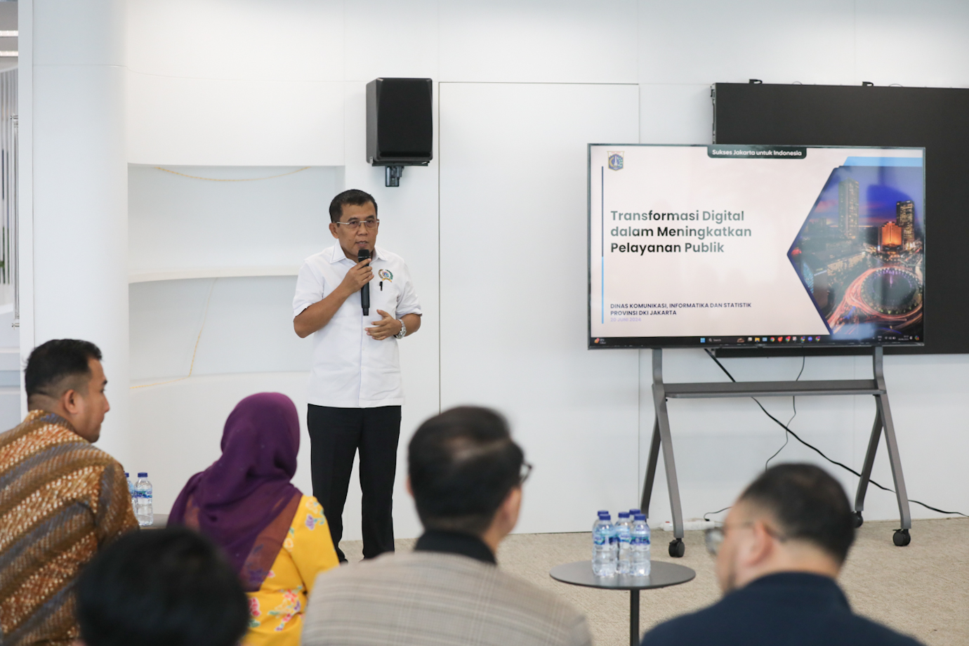 Sejumlah anggota Komisi A DPRD DKI Jakarta melakukan kunjungan ke Dinas Komunikasi, Informatika dan Statistik (Diskominfotik) DKI Jakarta di Future City Hub, JB Tower, Gambir, Jakarta Pusat, Kamis (20/6). Kunjungan tersebut dalam rangka mendengarkan paparan terkait transformasi digital dalam meningkatkan pelayanan publik dilanjutkan dengan pemberian saran dan diskusi.