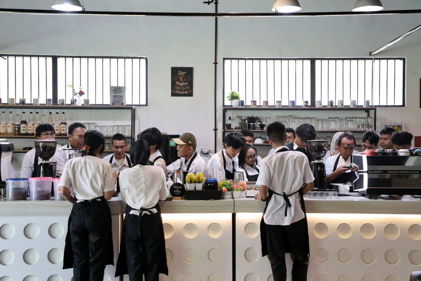 Sebanyak 40 peserta mengikuti pelatihan barista dan roasting di Pusat Pelatihan Kerja Daerah (PPKD) Jakarta Timur, Selasa (2/7). Dari 40 peserta ini, lima di antaranya merupakan warga binaan Lapas Narkotika Kelas II Cipinang, tujuh penyandang kebutuhan khusus atau disabilitas dan sisanya, merupakan masyarakat umum.
