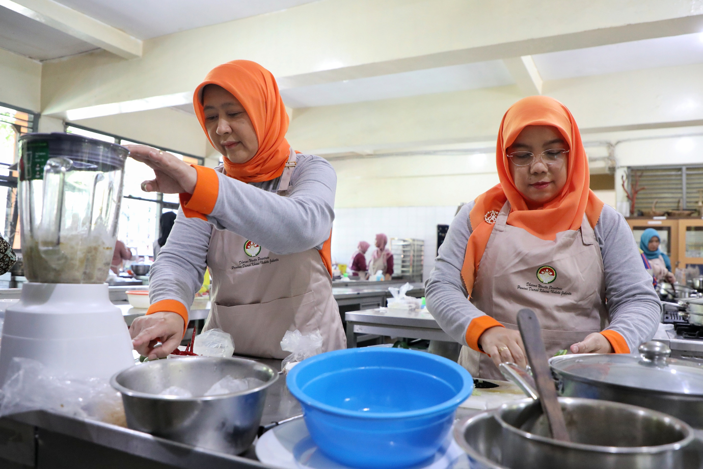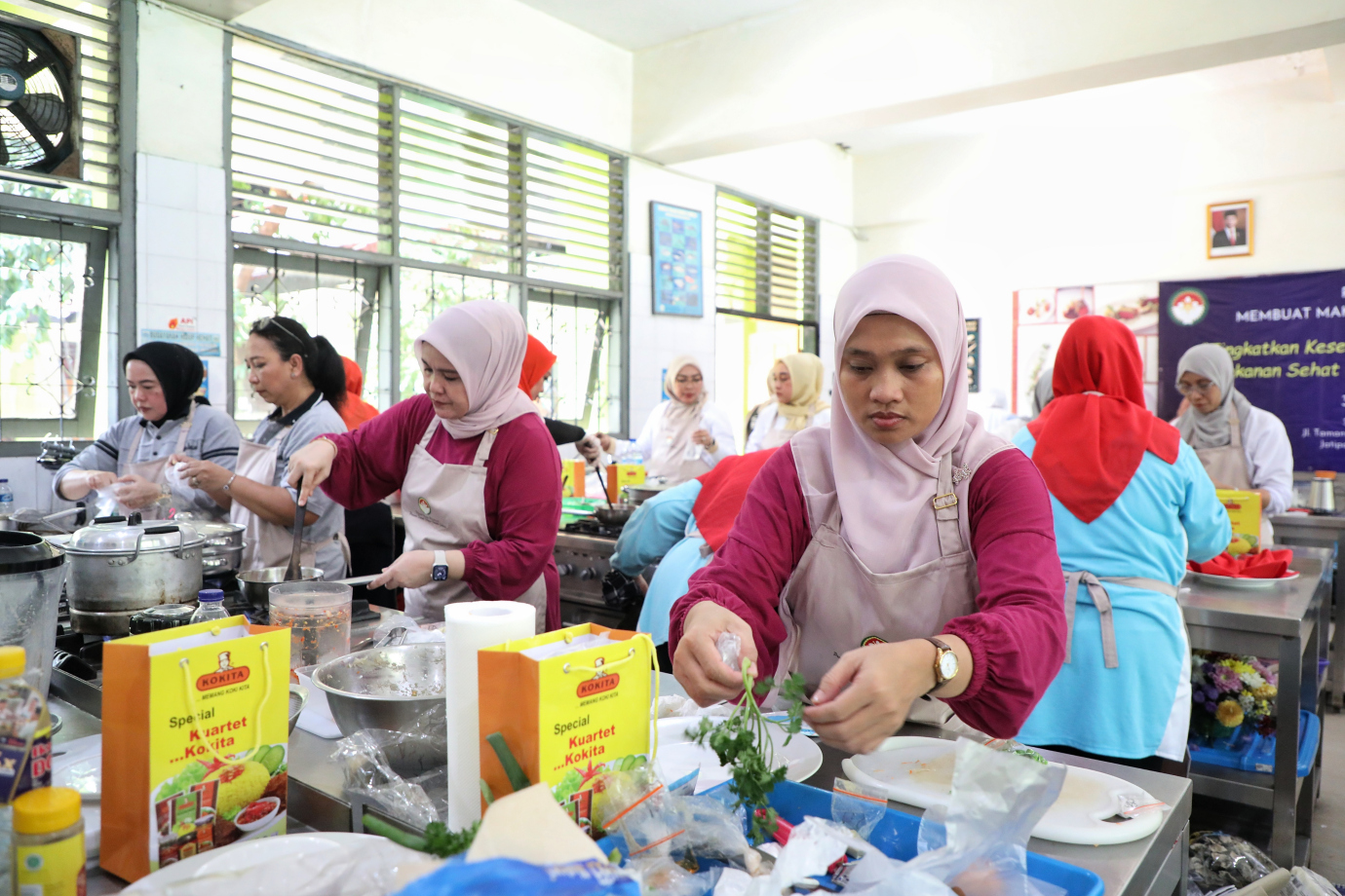 Dharma Wanita Persatuan (DWP) Provinsi DKI Jakarta menggelar pelatihan dan lomba membuat makanan sehat berbahan dasar ikan di Sekolah Menengah Kejuruan Negeri (SMK) 57 Jakarta, Jalan Taman Margasatwa, Jati Padang, Pasar Minggu, Rabu (3/7). Acara ini diikuti oleh 70 peserta dari DWP di seluruh OPD, Kota, Kabupaten di DKI Jakarta.