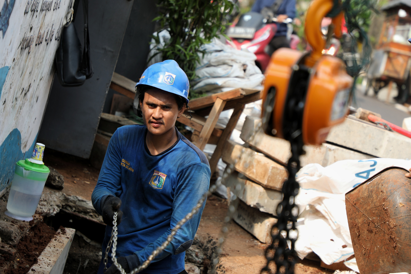 Satuan Pelaksana Sumber Daya Air (Satpel SDA) Kecamatan Tebet melakukan pemasangan u-ditch baru di Jalan Tebet Dalam 1, Tebet Barat, Tebet, Jakarta Selatan, Senin (15/7). Pemasangan u-ditch baru berdimensi 60 Sentimeter ini dilakukan sepanjang 180 meter.
