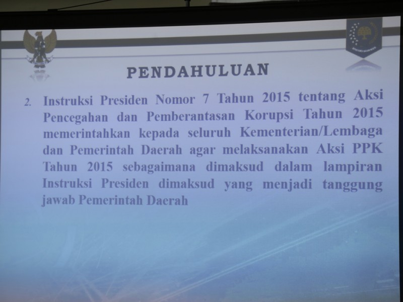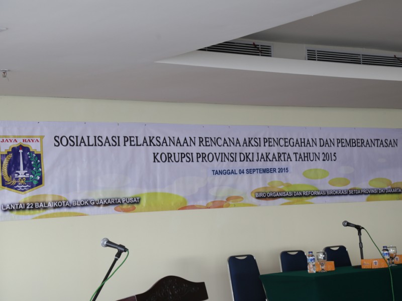 Pemerintah Provinsi DKI Jakarta melalui Biro Organisasi dan Reformasi Birokrasi Provinsi DKI Jakarta melakukan sosialisasi pencegahan dan pemberantasan korupsi di Balai Kota DKI Jakarta, Jumat (4/9/2015). Sosialisasi ini menghadirkan narasumber yang berkompeten di bidangnya. (Foto: Reza/beritajakarta.com)
