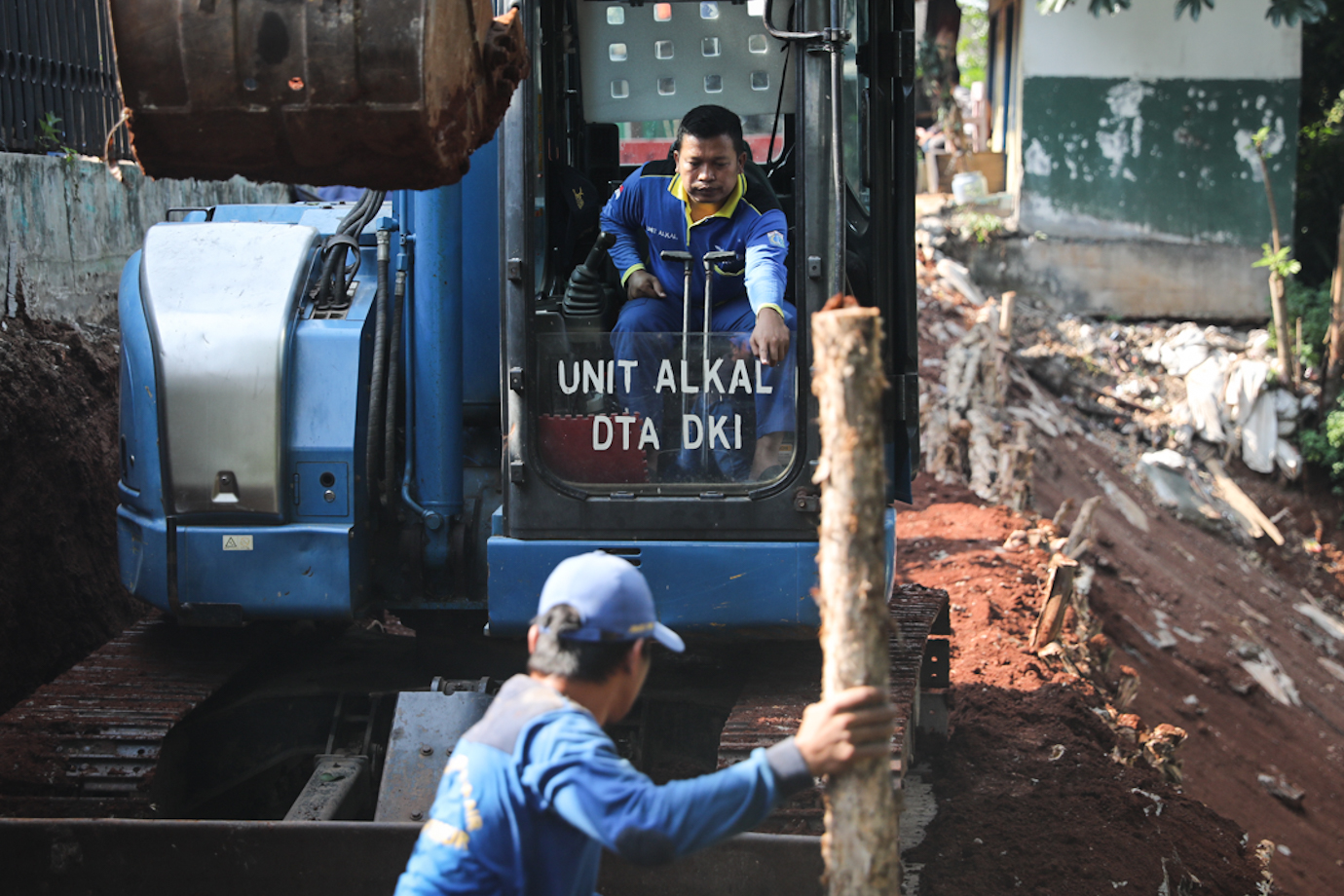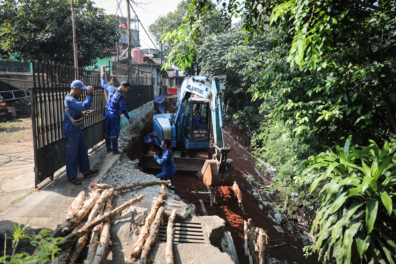 Satpel SDA Pasar Rebo Tangani Turap Longsor di Gedong