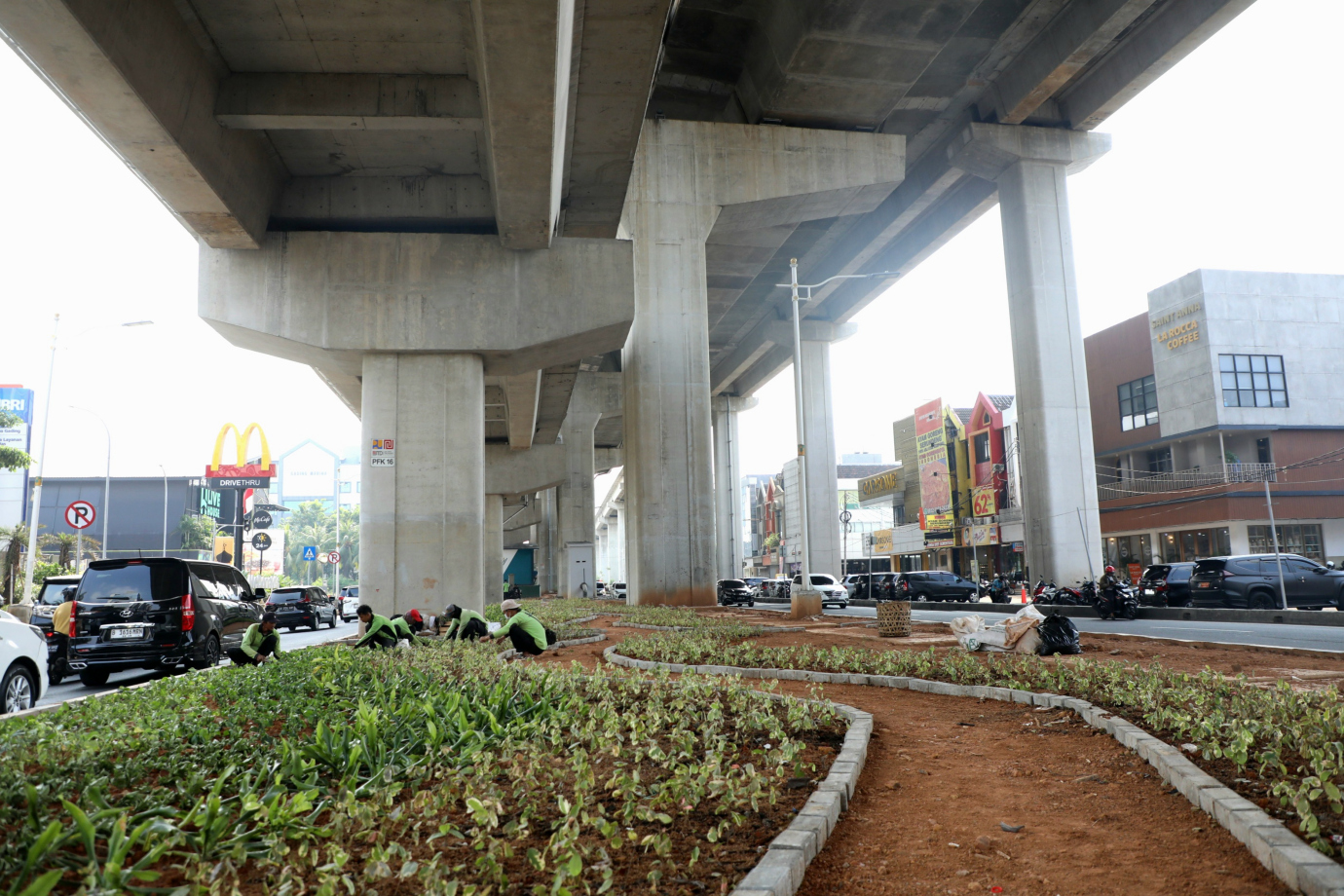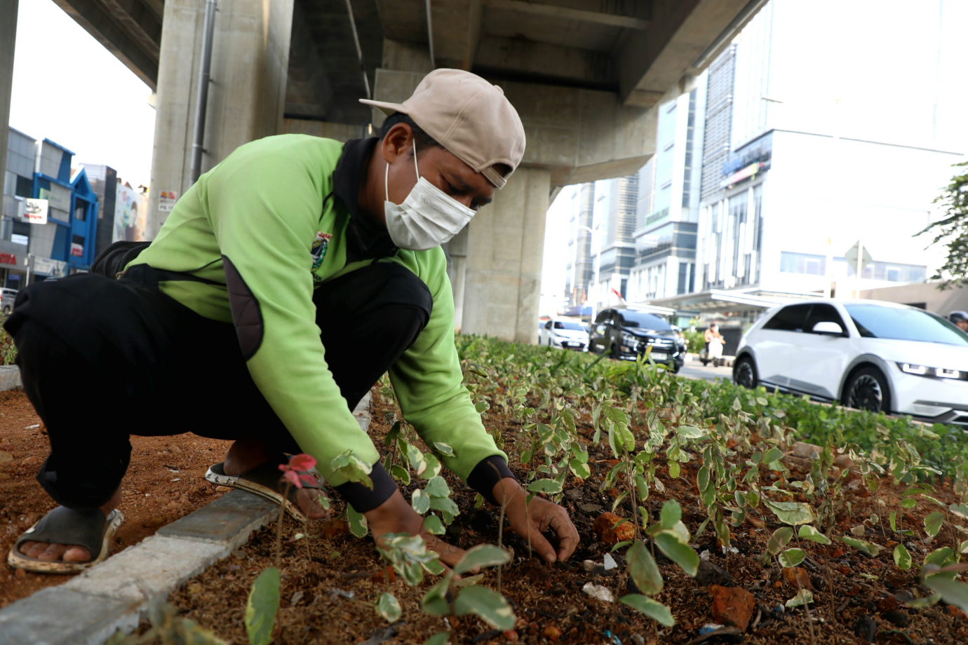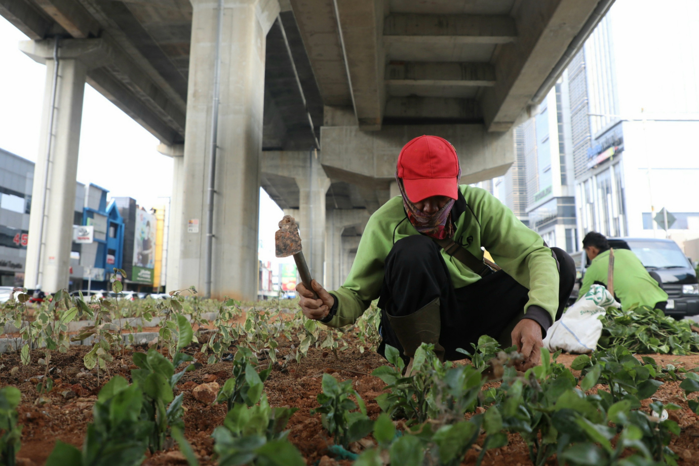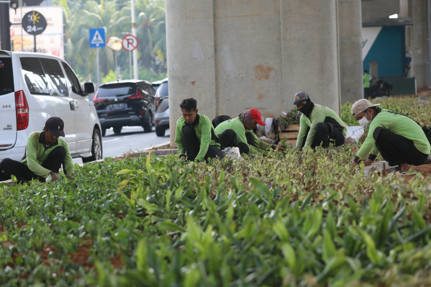 Sudin Tamhut Jakut Lakukan Penghijauan di Kolong Tol Boulevard Barat