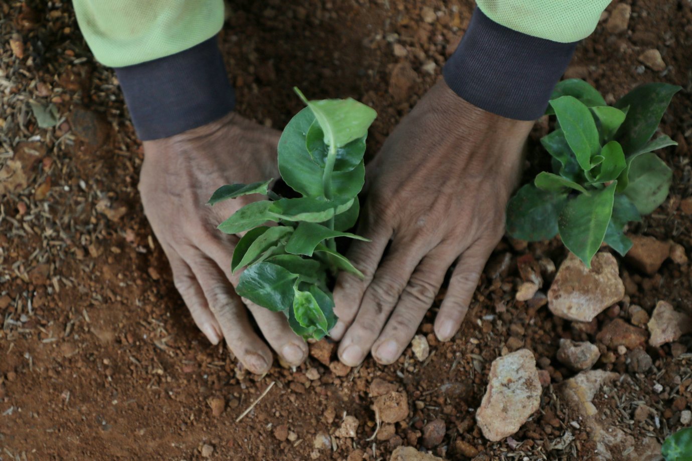 10 petugas Suku Dinas Pertamanan dan Hutan Kota (Sudin Tamhut) Jakarta Utara melakukan penghijauan dengan menanam tanaman hias di sepanjang kolong tol Boulevard Barat, Jalan Boulevard Barat Raya, Kelapa Gading Barat, Kelapa Gading, Jakarta Utara, Kamis (18/7). Penghijauan lahan seluas 1.500 meter persegi ini bertujuan untuk menambah keindahan khususnya di wilayah Kelapa Gading, Jakarta Utara.