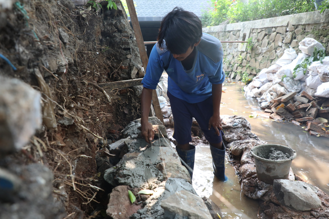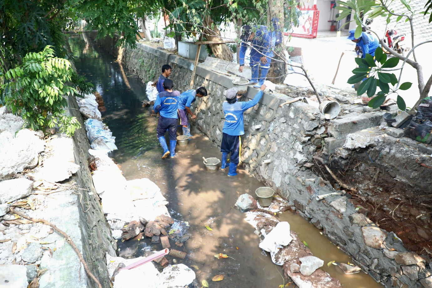 Satpel Dinas SDA Kelapa Gading Perbaiki Turap di Jalan Tabanas
