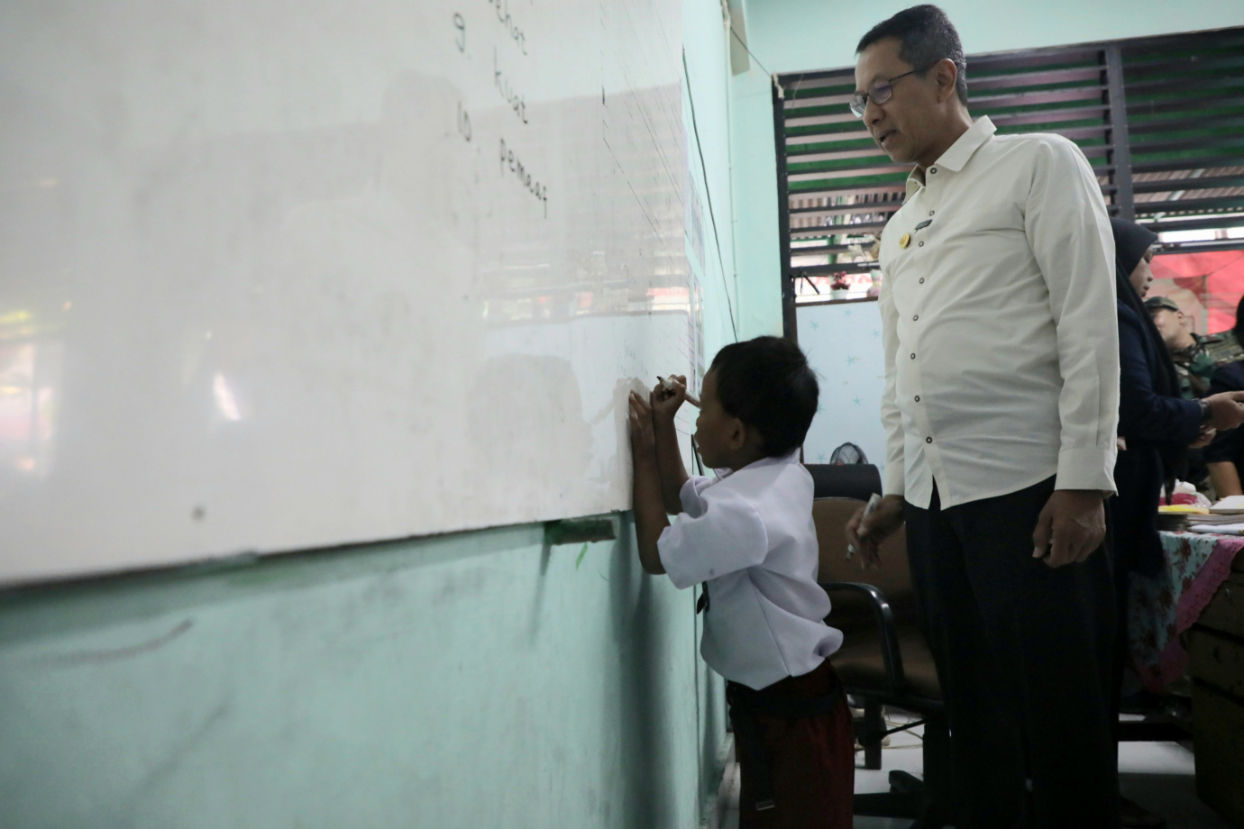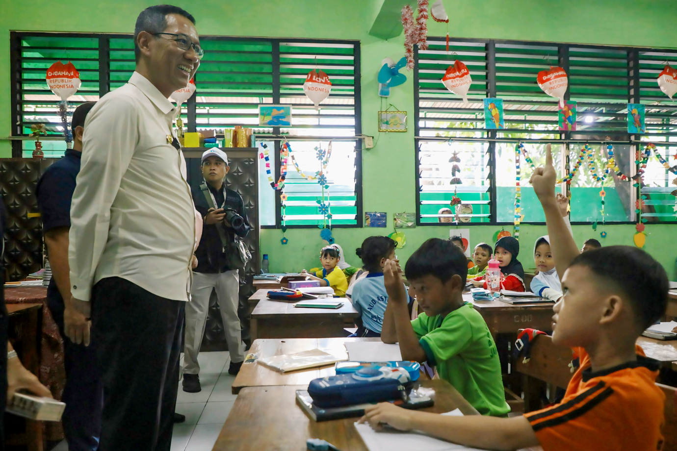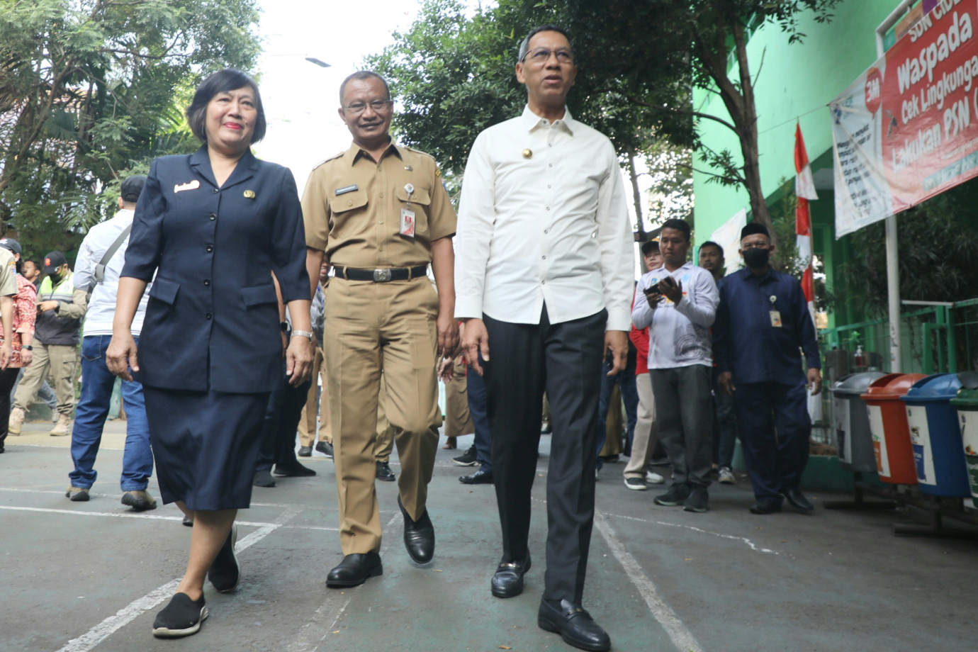 Penjabat (Pj) Gubernur DKI Jakarta, Heru Budi Hartono mengunjungi SDN 07 Cideng di Jalan Sangihe, Jakarta Pusat, Selasa (30/7). Dalam kunjungan ini Pj Gubernur mengimbau agar sekolah memperhatikan perkembangan anak didik baru di sekolah dan mampu mencegah tindakan perundungan (bullying), sehingga kegiatan belajar mengajar dapat berlangsung dengan baik dan aman.