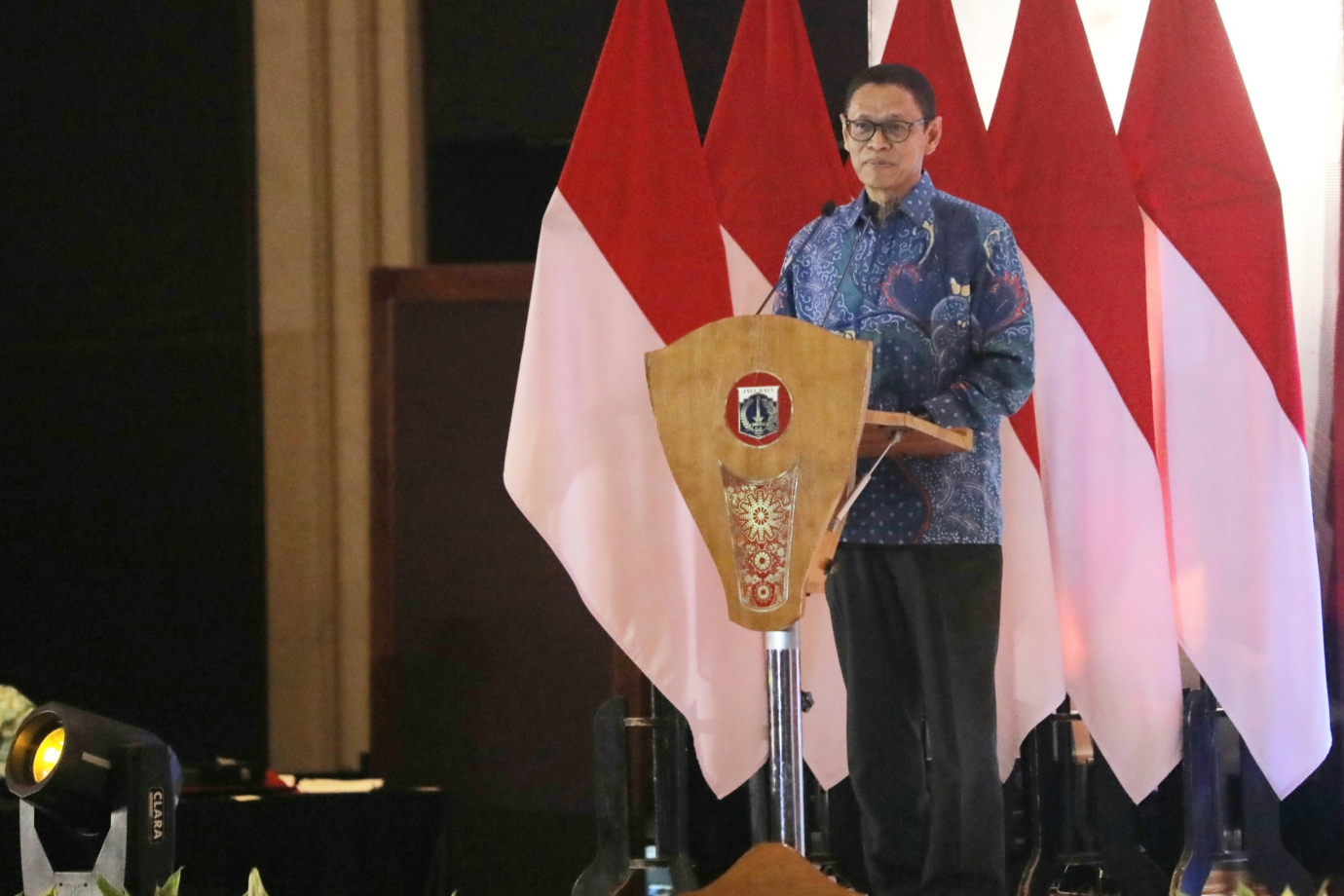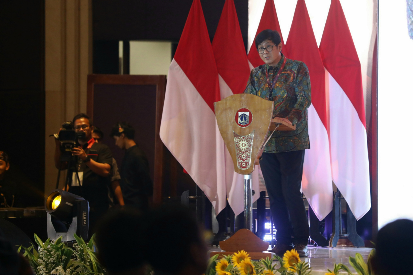 Penjabat (Pj) Gubernur DKI Jakarta, Heru Budi Hartono memberikan penghargaan kepada para pemenang Jakarta Investment Award (JIA) 2024 di Dian Ballroom, Hotel Raffles, Jalan Prof Dr Satrio, Setiabudi, Jakarta Selatan, Rabu (31/7). Jakarta Investment Award 2024 diselenggarakan sebagai apresiasi kepada para penanam modal yang telah berkontribusi terhadap perekonomian Jakarta dan melaksanakan kewajiban serta tanggung jawab sesuai dengan peraturan yang berlaku.