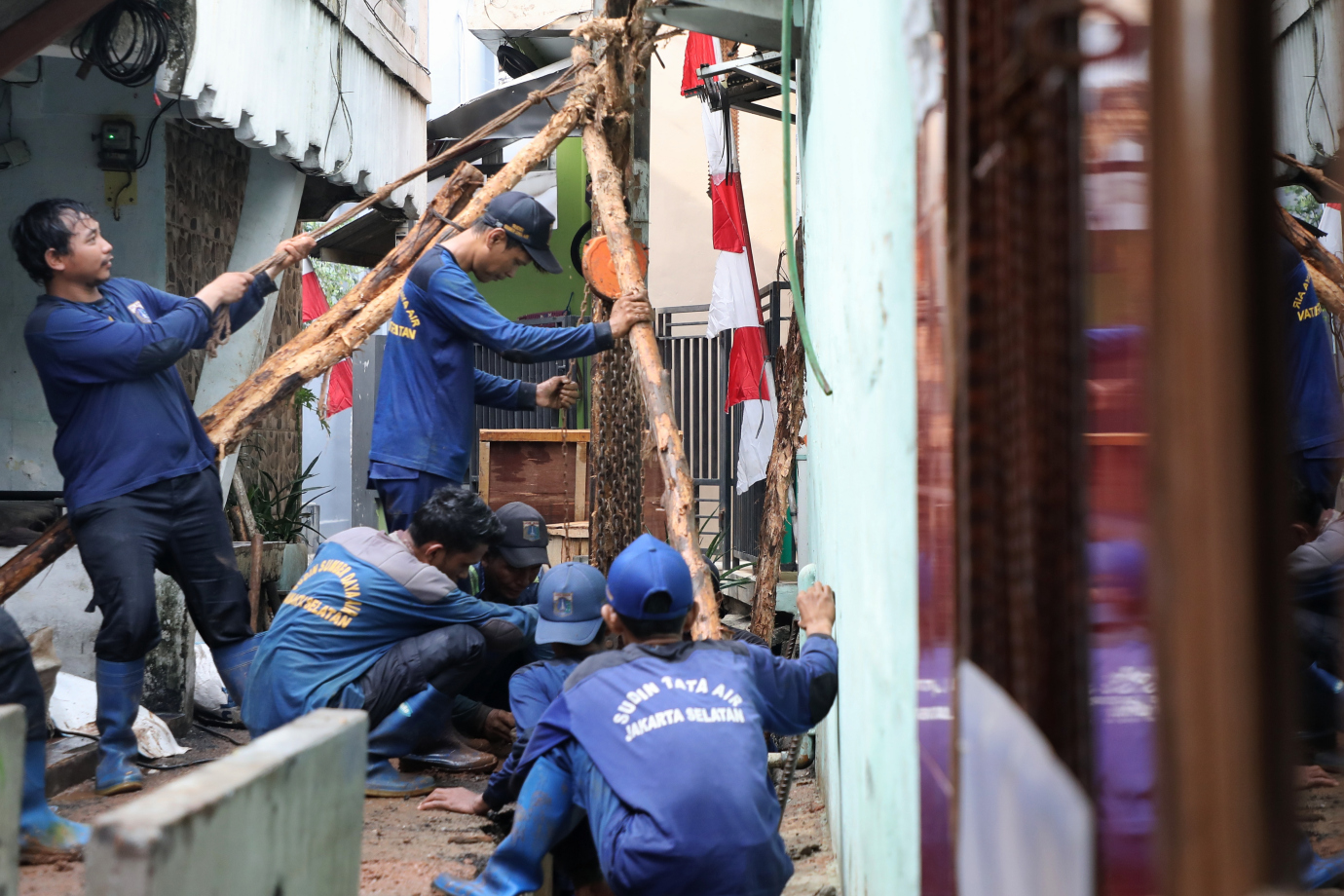 Satuan Pelaksana Sumber Daya Air (Satpel SDA) Kecamatan Tebet melakukan pemasangan U-ditch baru di Jalan Swadaya ll, Manggarai, Tebet, Jakarta Selatan, Jumat (2/8). Pemasangan U-ditch baru sepanjang 150 meter tersebut sudah mencapai 50 persen.