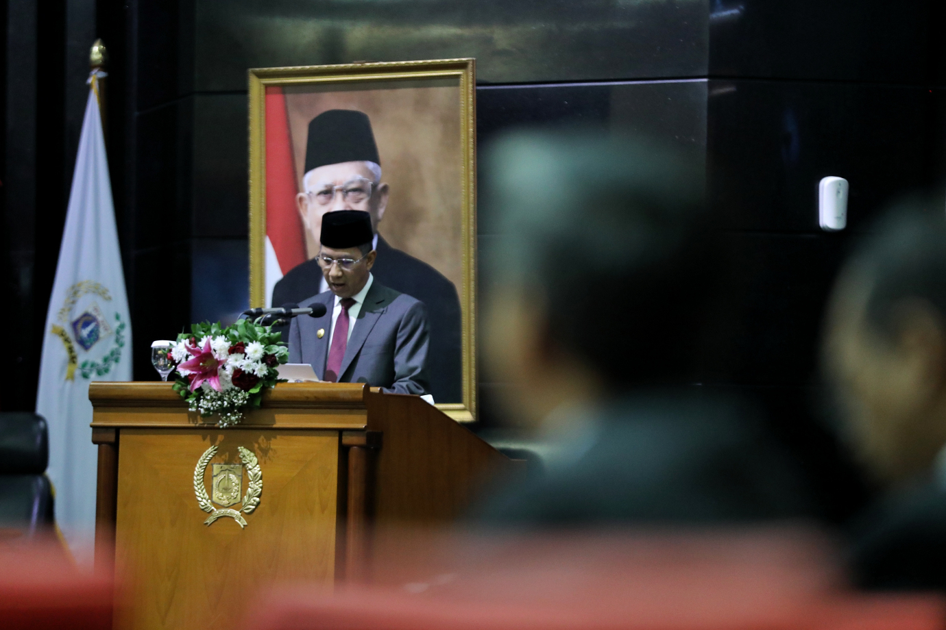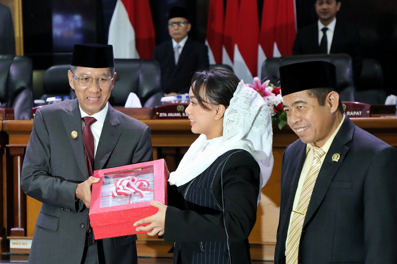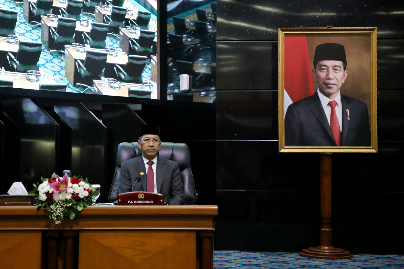 Penjabat Gubernur (Pj) Gubernur DKI Jakarta, Heru Budi Hartono menghadiri Rapat Paripurna, di Gedung DPRD DKI Jakarta, Kebon Sirih, Jakarta Pusat, Rabu (7/8). Rapat tersebut dimulai dengan dilaksanakannya Penandatanganan MoU Rancangan Perubahan Kebijakan Umum APBD serta Rancangan Perubahan Prioritas dan Plafon Anggaran Sementara APBD Provinsi DKI Jakarta Tahun Anggaran 2024 dilanjut Penyampaian Pidato Pj Gubernur mengenai Raperda tentang Perubahan APBD Provinsi DKI Jakarta Tahun Anggaran 2024 sekaligus jawaban atas Pemandangan Umum Fraksi-Fraksi terhadap Raperda tentang Rencana Tata Ruang Wilayah (RTRW) Provinsi DKI Jakarta Tahun 2024-2044 dan Raperda tentang Rencana Pembangunan Jangka Panjang Daerah (RPJPD) Tahun 2025-2045.