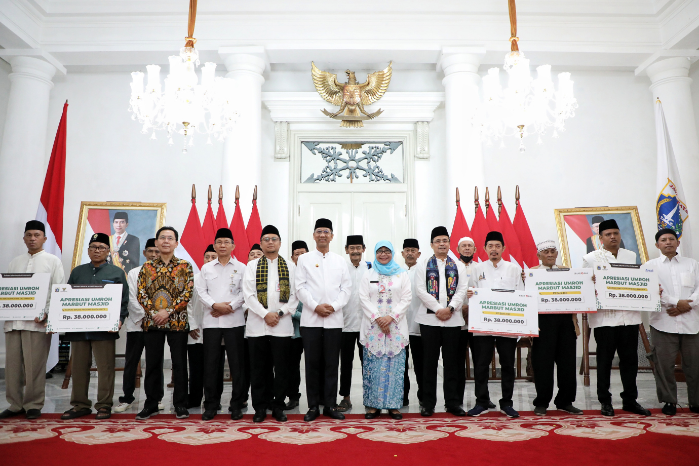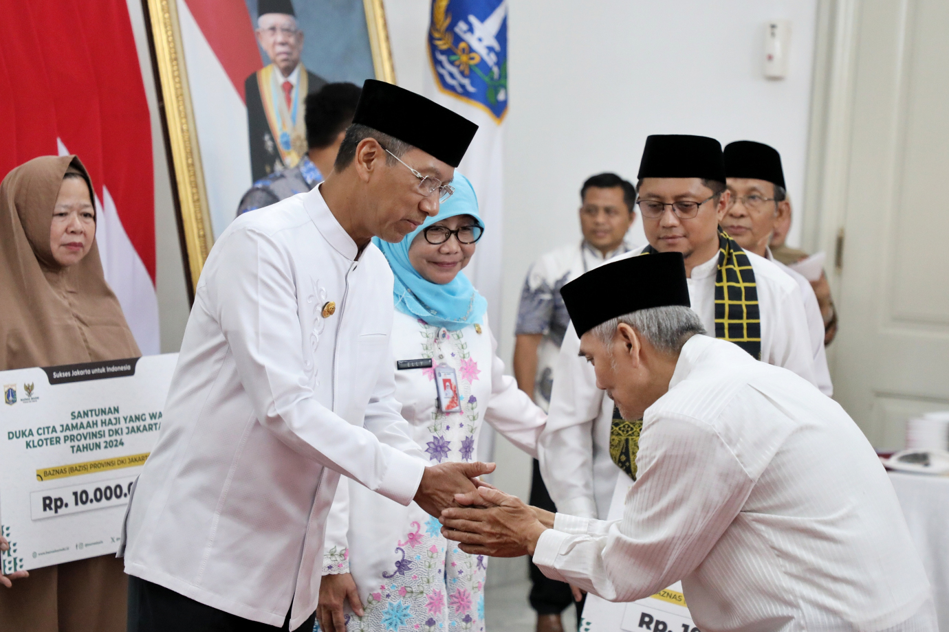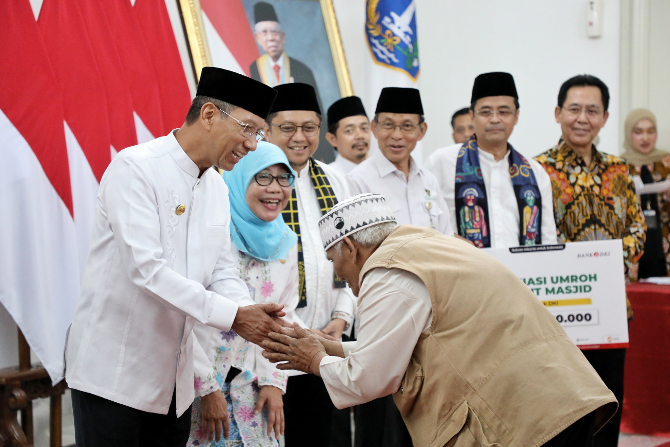 Pj Gubernur Serahkan Hadiah Umrah pada 20 Marbut Masjid di Jakarta