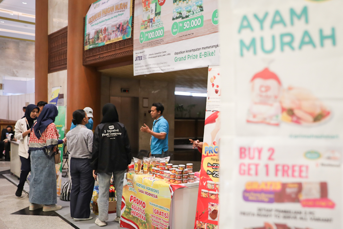 Pemprov DKI Jakarta bersama Badan Pangan Nasional dan Himpunan Peritel & Penyewa Pusat Perbelanjaan Indonesia (HIPPINDO) meluncurkan gerakan pangan murah pada pameran Jakarta International Investment, Trade, Tourism and SME Expo (JITEX) 2024 di Jakarta Convention Center (JCC), Tanah Abang, Jakarta Pusat, Sabtu (10/8). Gerakan pangan murah yang diisi dengan bazar aneka bahan pangan dengan harga terjangkau ini dilakukan untuk menjaga stabilitas inflasi di Jakarta.