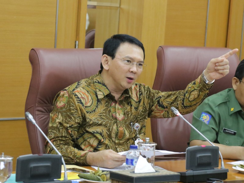 Gubernur DKI Jakarta, Basuki Tjahaja Purnama memimpin rapat bersama sejumlah Kepala Satuan Kerja Perangkat Daerah (SKPD), di Balai Kota DKI Jakarta, Senin (07/09/2015). Salah satu topik pembahasan dalam rapat tersebut yakni terkait sodetan Ciliwung-Kanal Banjir Timur (KBT). (Foto: Reza/beritajakarta.com)