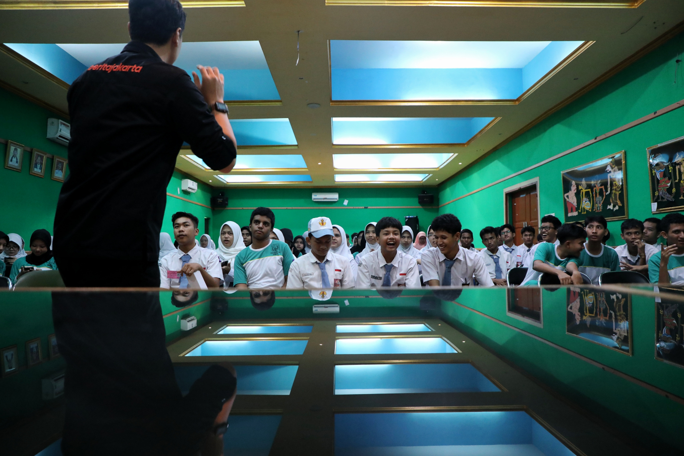 Jakarta Smart City (JSC) dan beritajakarta melakukan sosialisasi soal aplikasi Jakarta Kini (JAKI) dan website beritajakarta di SMAN 104, Jalan H Taiman Ujung, Kelurahan Gedong, Pasar Rebo, Jakarta Timur, Senin (12/8). Kegiatan ini diikuti oleh 100 peserta dari kelas 11 SMAN 104 Jakarta.