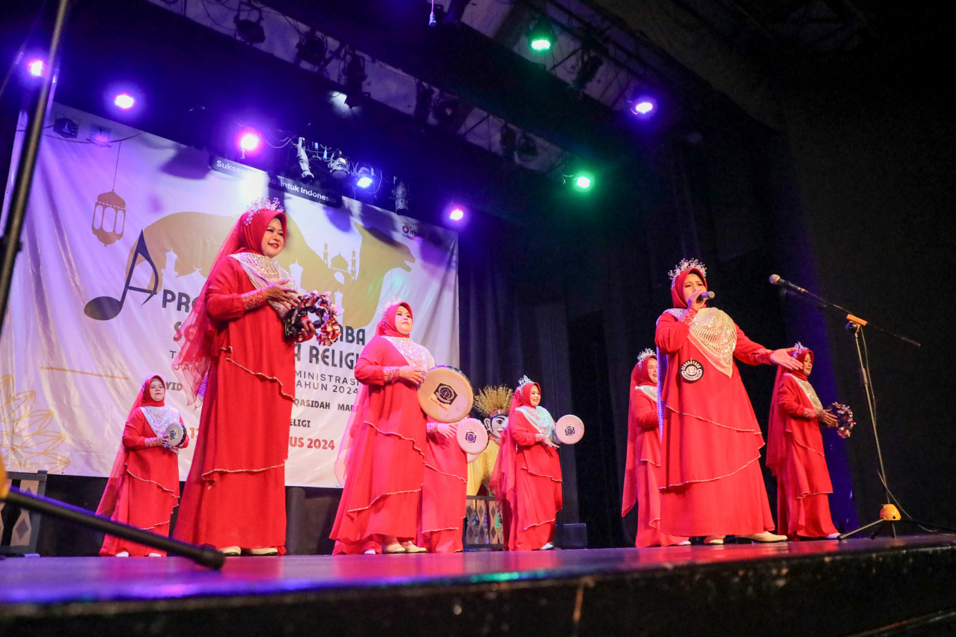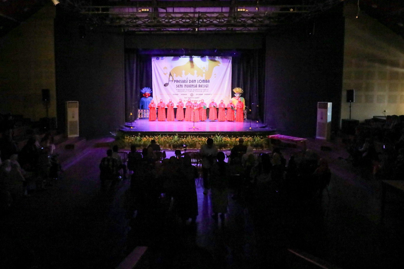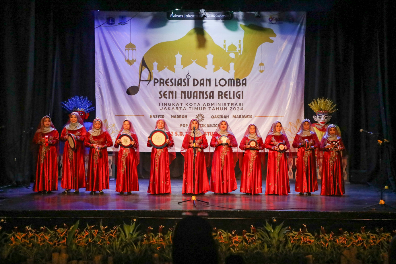 Suku Dinas (Sudin) Kebudayaan Jakarta Timur menggelar Lomba Apresiasi dan Seni Nuansa Religi 2024 di Gedung Pusat Pelatihan Seni Budaya (PPSB) Kisam Dji\'un, Jalan H Naman, Pondok Kelapa, Duren Sawit, Jakarta Timur, Selasa (13/8). Kegiatan yang digelar dari tanggal 12-16 Agustus 2024 ini diikuti 83 grup dari 10 kecamatan di Jakarta Timur dengan memperlombakan lima kategori antara lain, nasyid, hadrah, kasidah, marawis dan pop akustik religi.