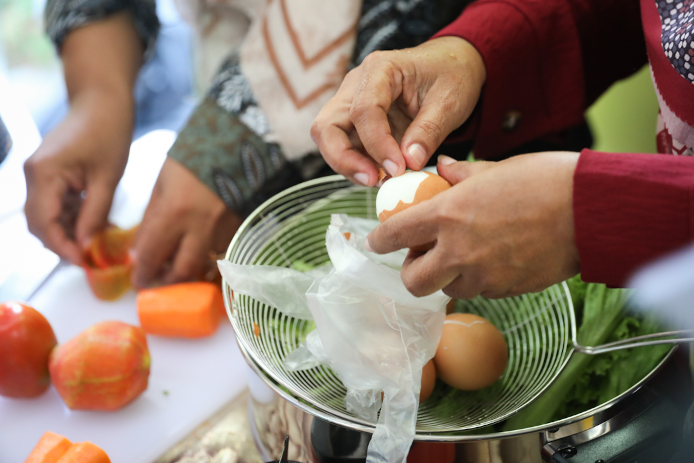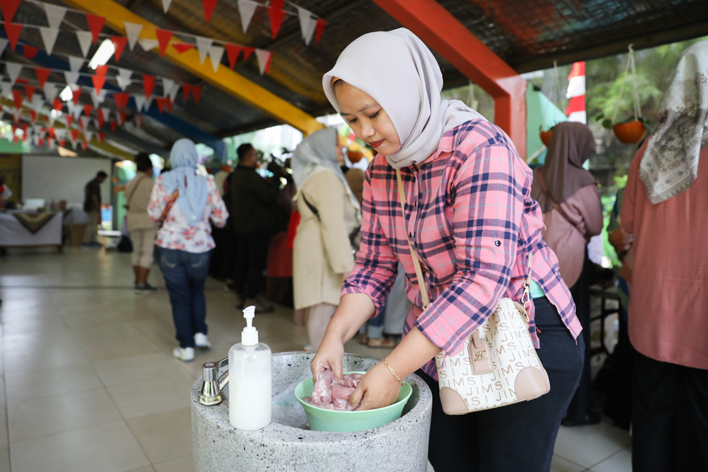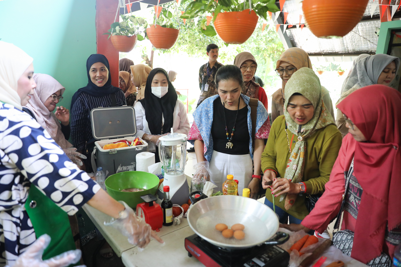 Sejumlah warga mengikuti pelatihan diversifikasi olahan pangan ternak di RPTRA Gondangdia, Menteng, Jakarta Pusat, Selasa (13/8). Pelatihan diversifikasi olahan pangan ternak digagas oleh Suku Dinas Ketahanan Pangan, Kelautan dan Pertanian (Sudin KPKP) Jakarta Pusat sebagai upaya pencegahan stunting serta menumbuhkan potensi wirausaha baru.