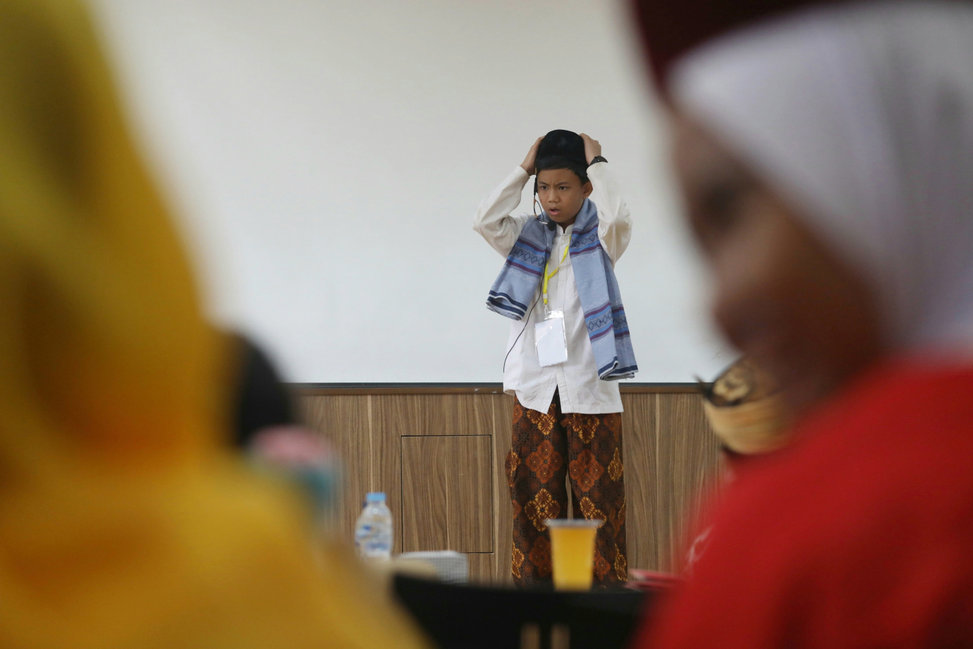 Sebanyak 25 murid Sekolah Dasar (SD) mengikuti kegiatan lomba bertutur di Aula Suku Dinas Perpustakaan dan Kearsipan (Sudin Pusip) Jakarta Pusat, Jalan Tanah Abang I, Petojo Selatan, Gambir Jakarta Pusat, Rabu (14/8). Kegiatan lomba bertutur ini merupakan rangkaian dari Hari Anak Jakarta Membaca (Hanjaba) Tingkat Kota Jakarta Pusat yang digelar dari tanggal 13-15 Agustus 2024.