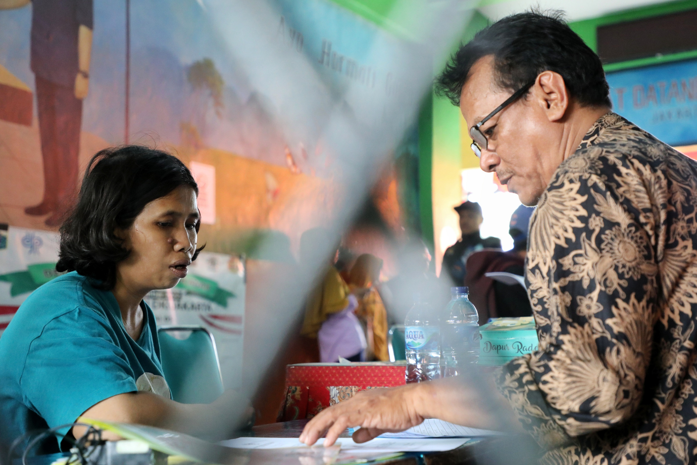 Dinas Pendidikan Provinsi DKI Jakarta gelar layanan penerbitan Surat Keterangan Pengganti Ijazah (SKPI) yang dilakukan di tempat pengungsian SDN Manggarai 05, Manggarai, Tebet, Jakarta Selatan, Kamis (15/8). Dibukanya layanan ini bertujuan untuk mendata jumlah peserta didik yang terdampak dari bencana kebakaran dan mendata dokumen terkait pendidikan yang musnah hilang karena kebakaran seperti rapor dan ijazah.
