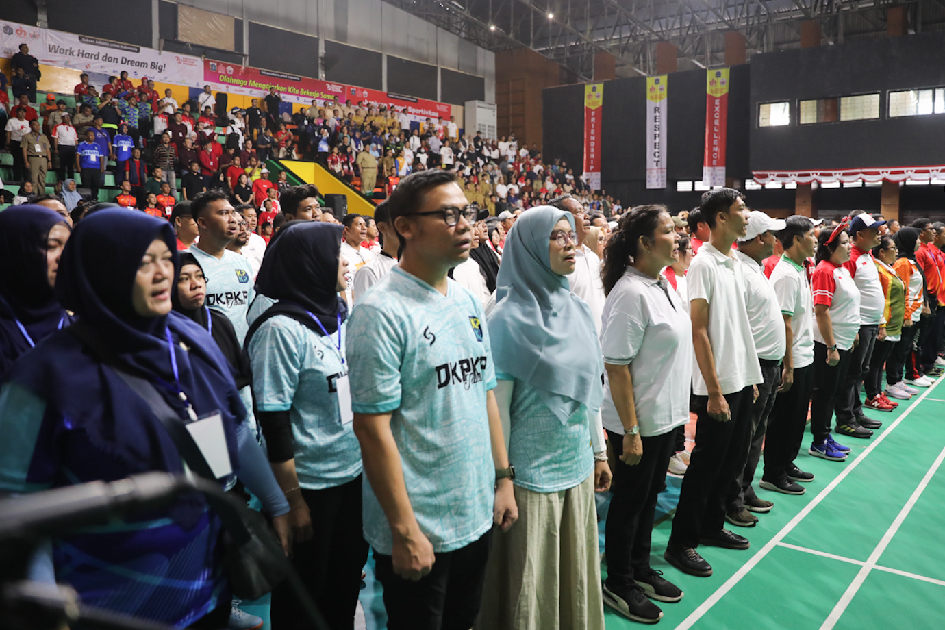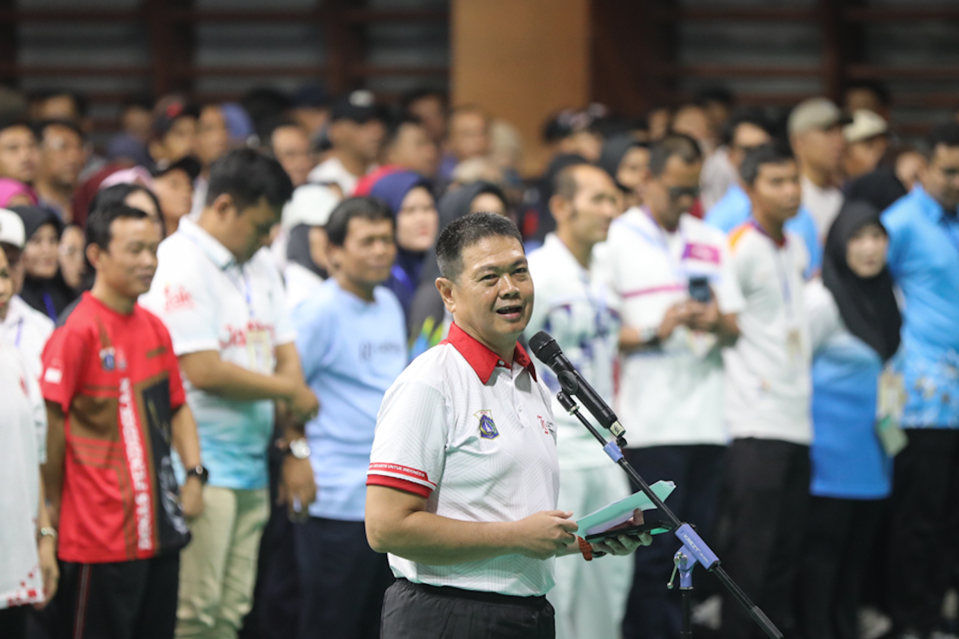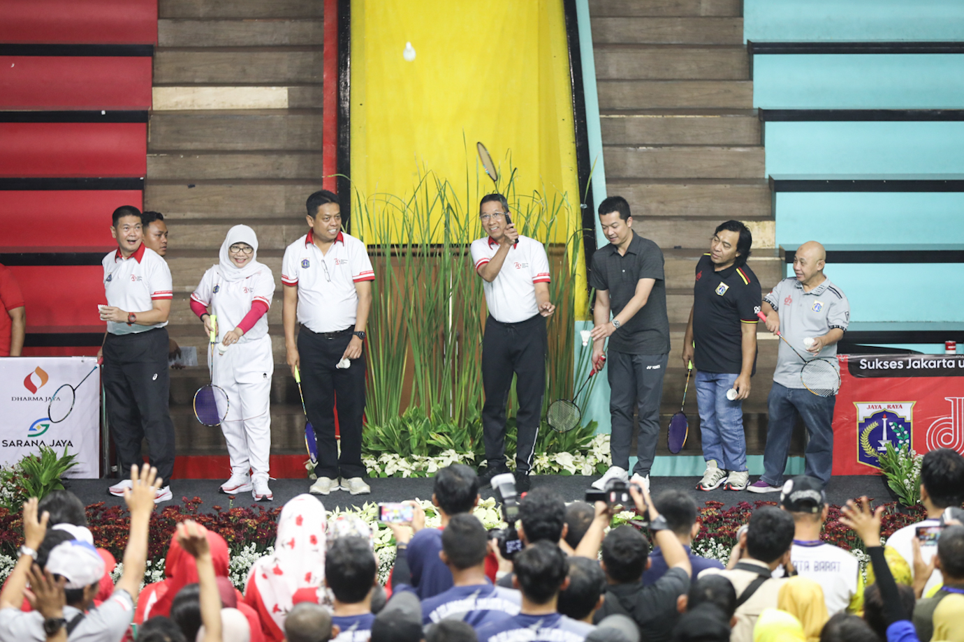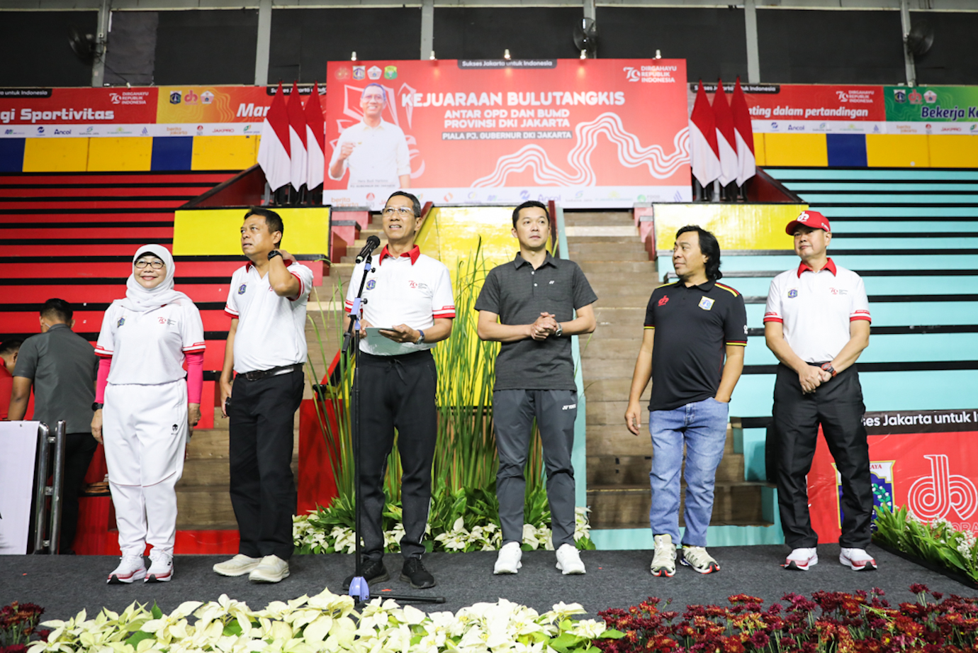 Penjabat (Pj) Gubernur DKI Jakarta, Heru Budi Hartono membuka Kejuaraan Bulu Tangkis Piala Pj Gubernur DKI Jakarta di Gelanggang Remaja Jakarta Timur, Jatinegara, Senin (19/8). Kejuaraan bulu tangkis antar-OPD dan BUMD DKI Jakarta yang melibatkan 400 peserta tersebut digelar selama empat hari pada 19-22 Agustus 2024.