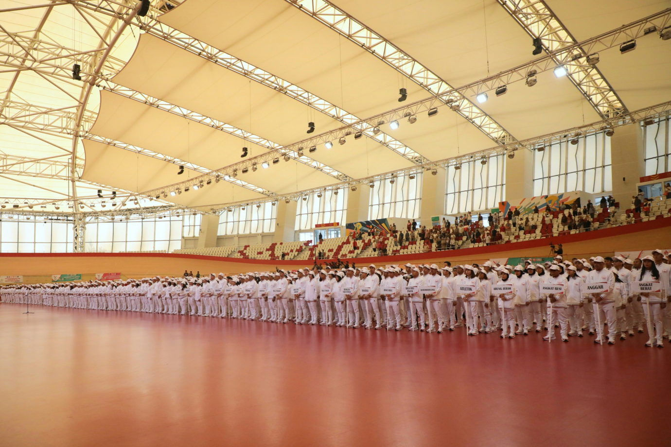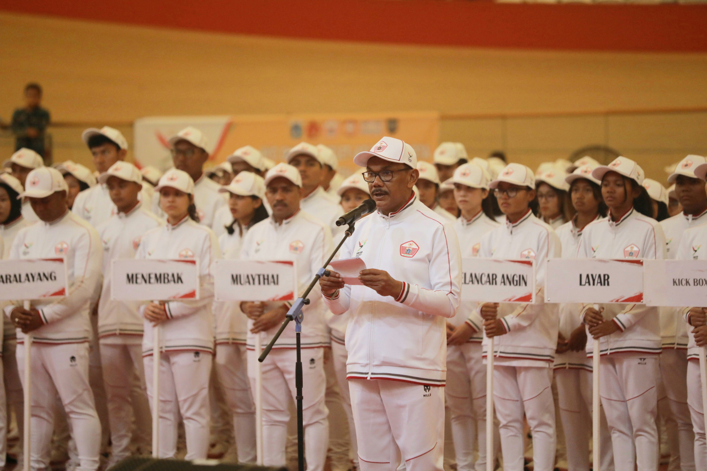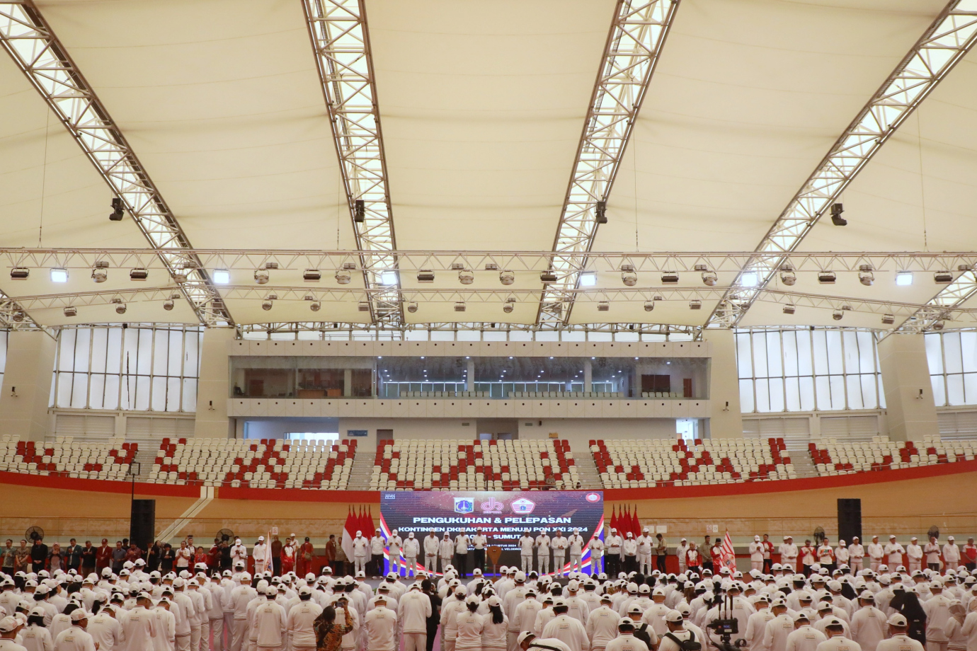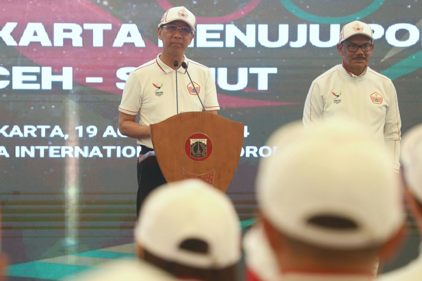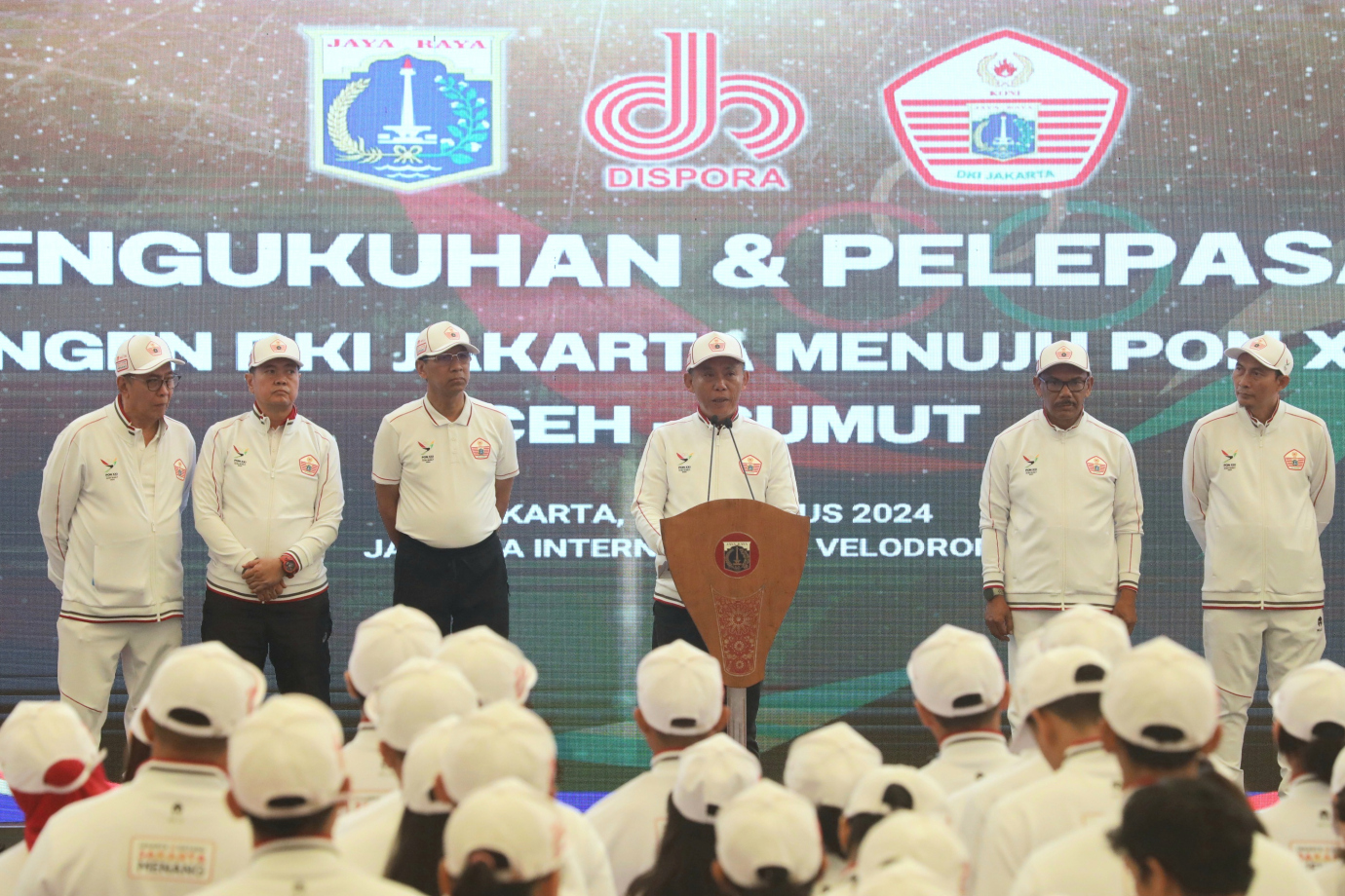 Penjabat (Pj) Gubernur DKI Jakarta, Heru Budi Hartono melepas keberangkatan 1.046 atlet DKI Jakarta di Jakarta International Velodrome, Jakarta Timur, Senin (19/8). Kontingen DKI Jakarta akan mengikuti perhelatan Pekan Olahraga Nasional (PON) yang berlangsung pada 9-20 September 2024 di Aceh dan Sumatera Utara. #kabarpon2024