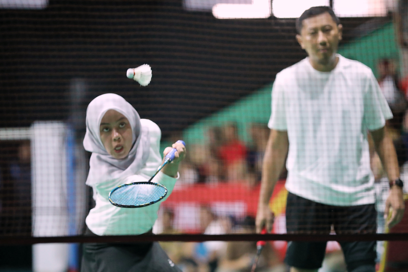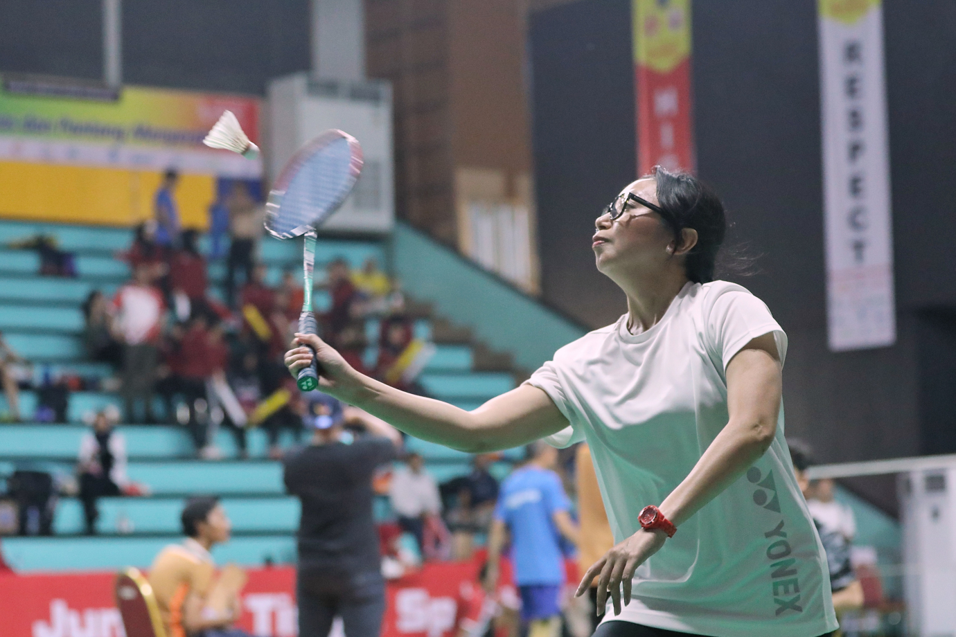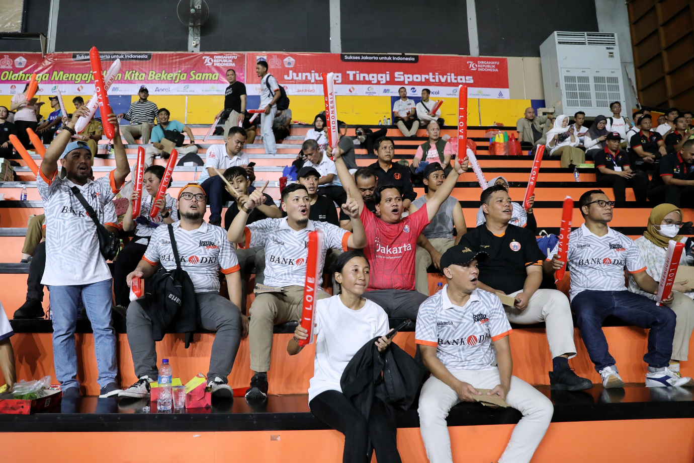 Dinas Kominfotik DKI Jakarta menjalani laga Piala Pj Gubernur DKI Jakarta 2024 pada kategori beregu campuran melawan Dinas Perhubungan DKI Jakarta di Gelanggang Remaja Jakarta Timur, Jatinegara, Senin (19/8). Pada kategori beregu campuran ini mempertandingkan Ganda Putra, Ganda Putri dan Ganda Campuran.