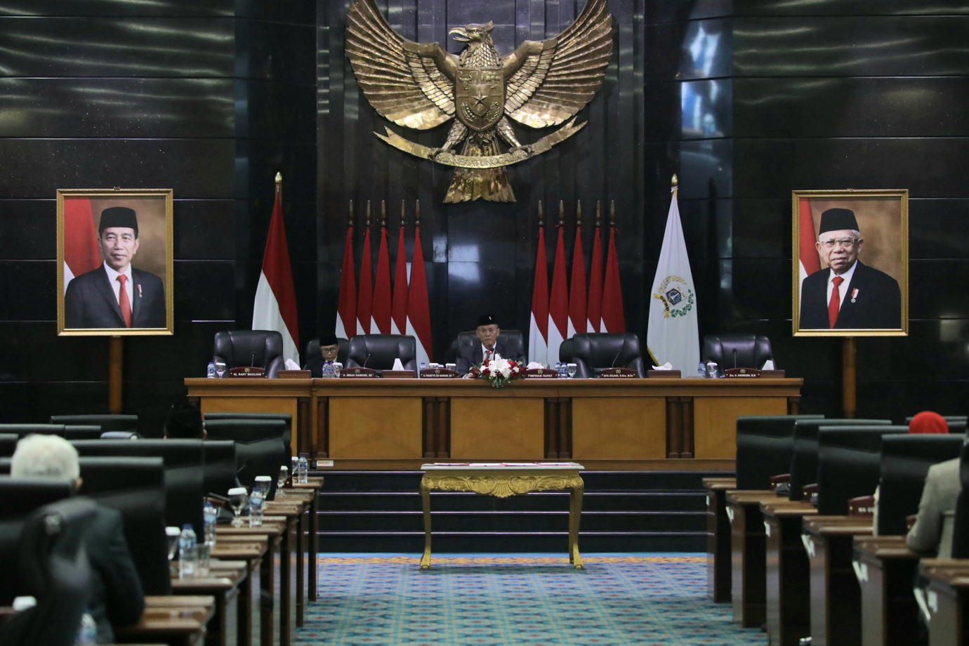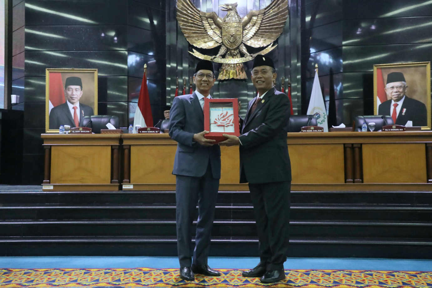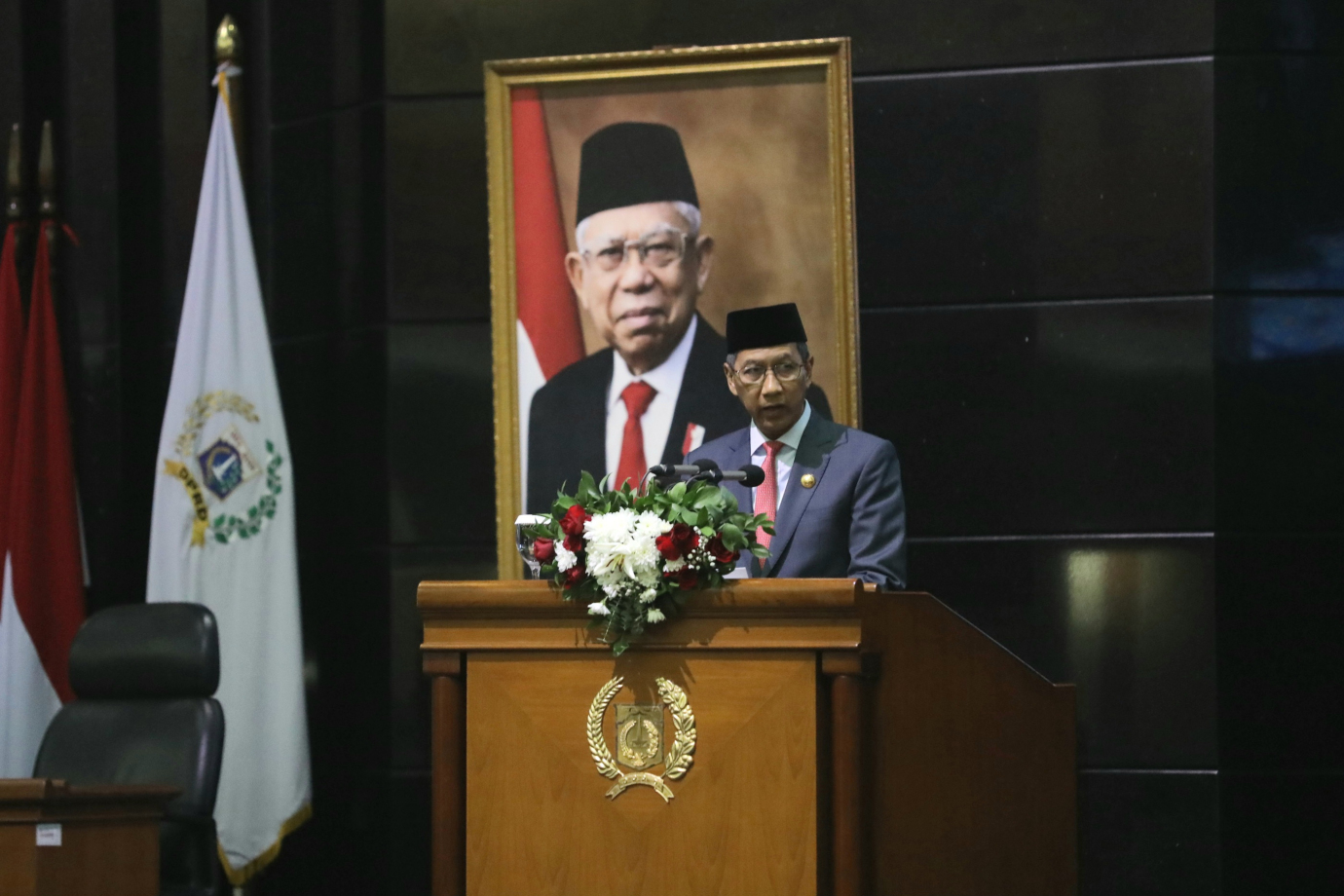 Penjabat (Pj) Gubernur DKI Jakarta, Heru Budi Hartono menghadiri Rapat Paripurna DPRD Provinsi DKI Jakarta di Gedung DPRD Provinsi DKI Jakarta, Kebon Sirih, Gambir, Jakarta Pusat, Selasa (20/8). Rapat Paripurna kali ini beragendakan penyampaian pendapat akhir Pj Gubernur terhadap Raperda Tentang Perubahan APBD Provinsi DKI Jakarta Tahun 2024, Raperda tentang Rencana Tata Ruang Wilayah (RTRW) Provinsi DKI Jakarta Tahun 2024-2044, dan Raperda tentang Rencana Pembangunan Jangka Panjang Daerah (RPJPD) Tahun 2025-2045.