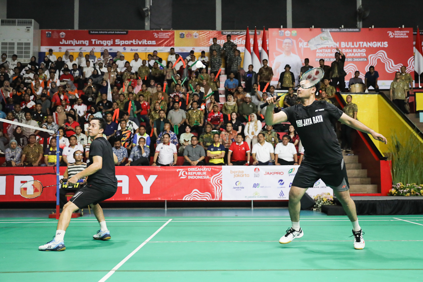 PT Pembangunan Jaya meraih dua gelar juara dari nomor ganda putra dan ganda putri perseorangan pada kejuaraan bulutangkis Piala Pj Gubernur di Gelanggang Remaja Jakarta Timur, Jatinegara, Kamis (22/8). Sementara pada nomor beregu, Dinas Pemuda dan Olahraga (Dispora) DKI Jakarta meraih juara setelah mengalahkan Bank DKI di final dengan skor 2-1.