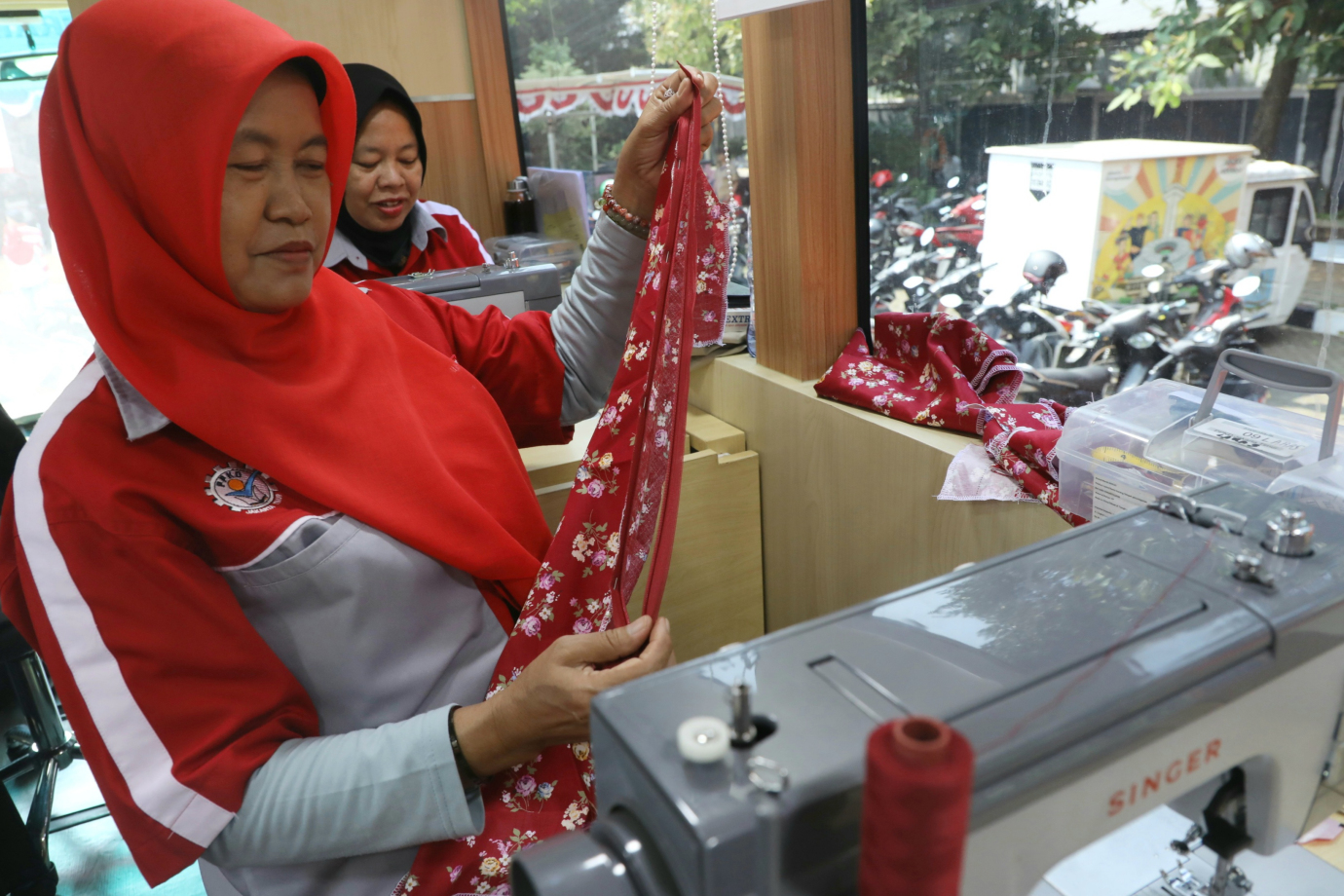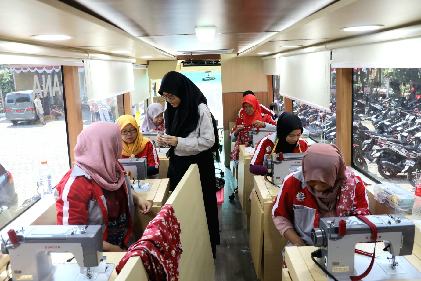 10 warga mengikuti pelatihan Mobile Training Unit (MTU) Tata Busana di halaman kantor Kelurahan Cipinang Cempedak, Jatinegara, Jakarta Timur, Senin (26/8). Pelatihan yang di gelar dari 12 Agustus hingga 6 September 2024 dilaksanakan sebagai upaya meningkatkan keahlian dan keterampilan sumber daya manusia untuk mengatasi masalah dibidang ketenagakerjaan khususnya di wilayah DKI Jakarta.