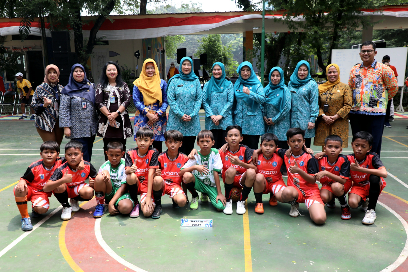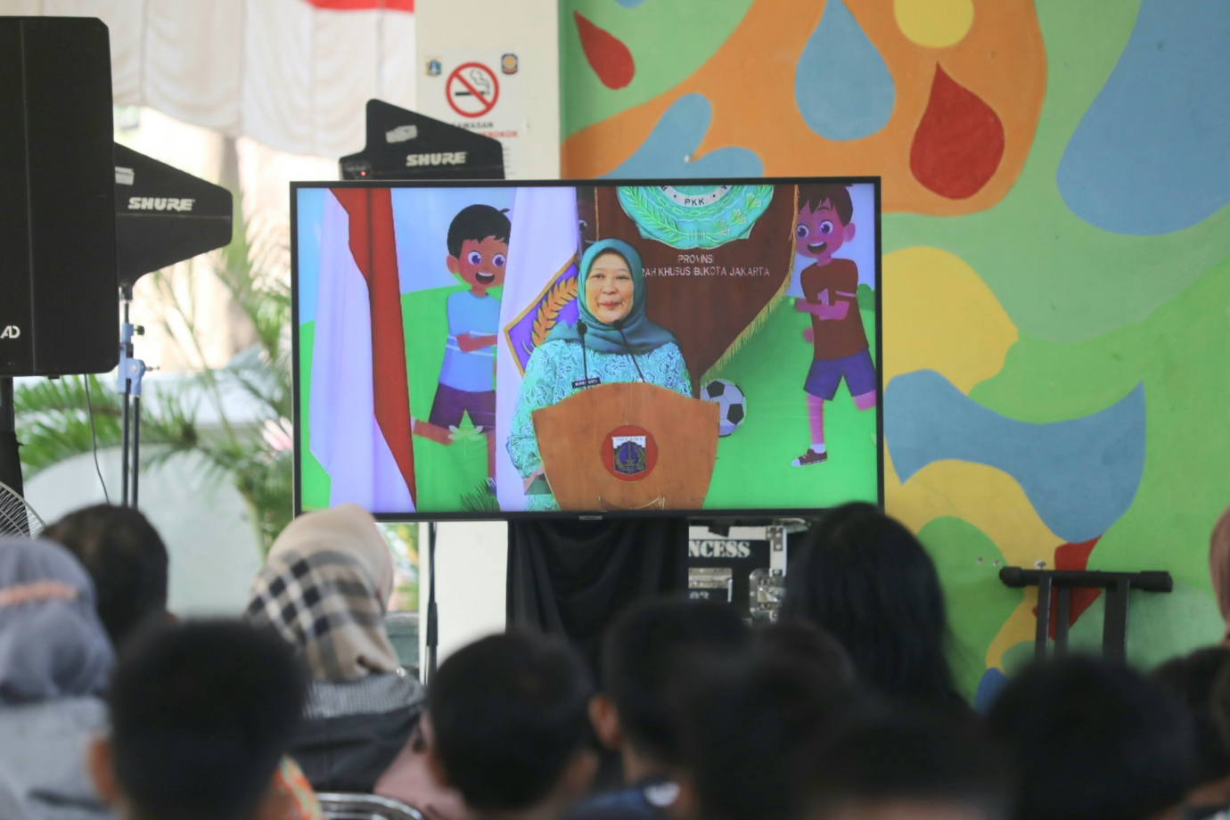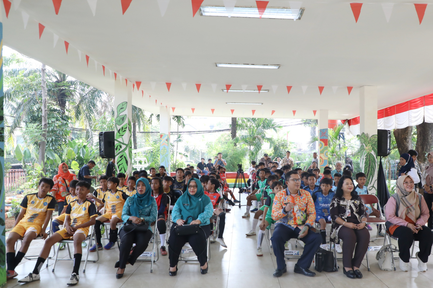 Penjabat (Pj) Ketua TP PKK DKI Jakarta, Mirdiyanti Heru membuka kegiatan Gebyar RPTRA Tingkat Provinsi Tahun 2024 secara Hybrid, Kamis (29/8). Usai membuka Gebyar RPTRA Pj Ketua TP PKK menyaksikan pertandingan futsal di RPTRA Borobudur.