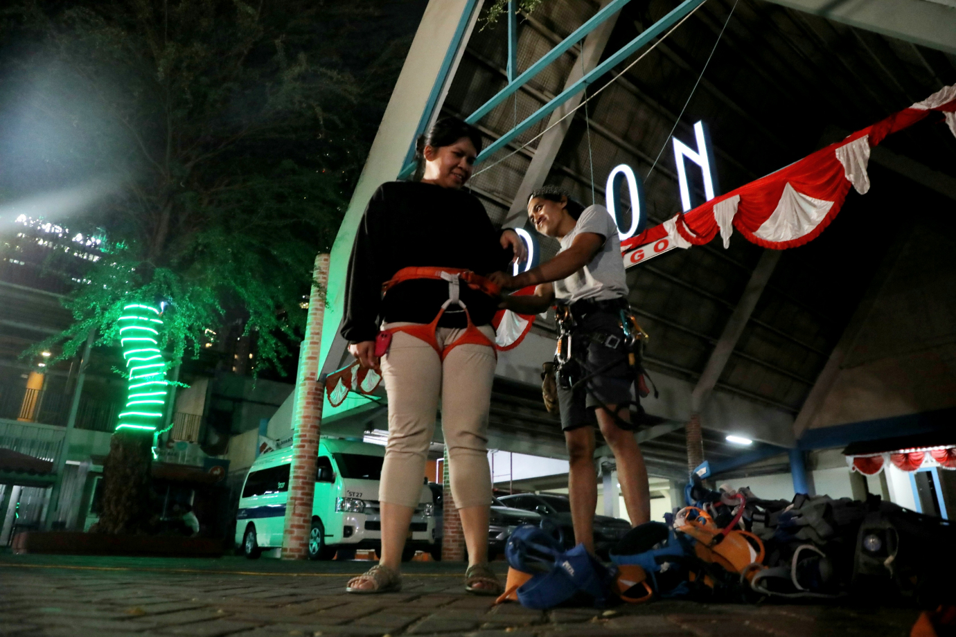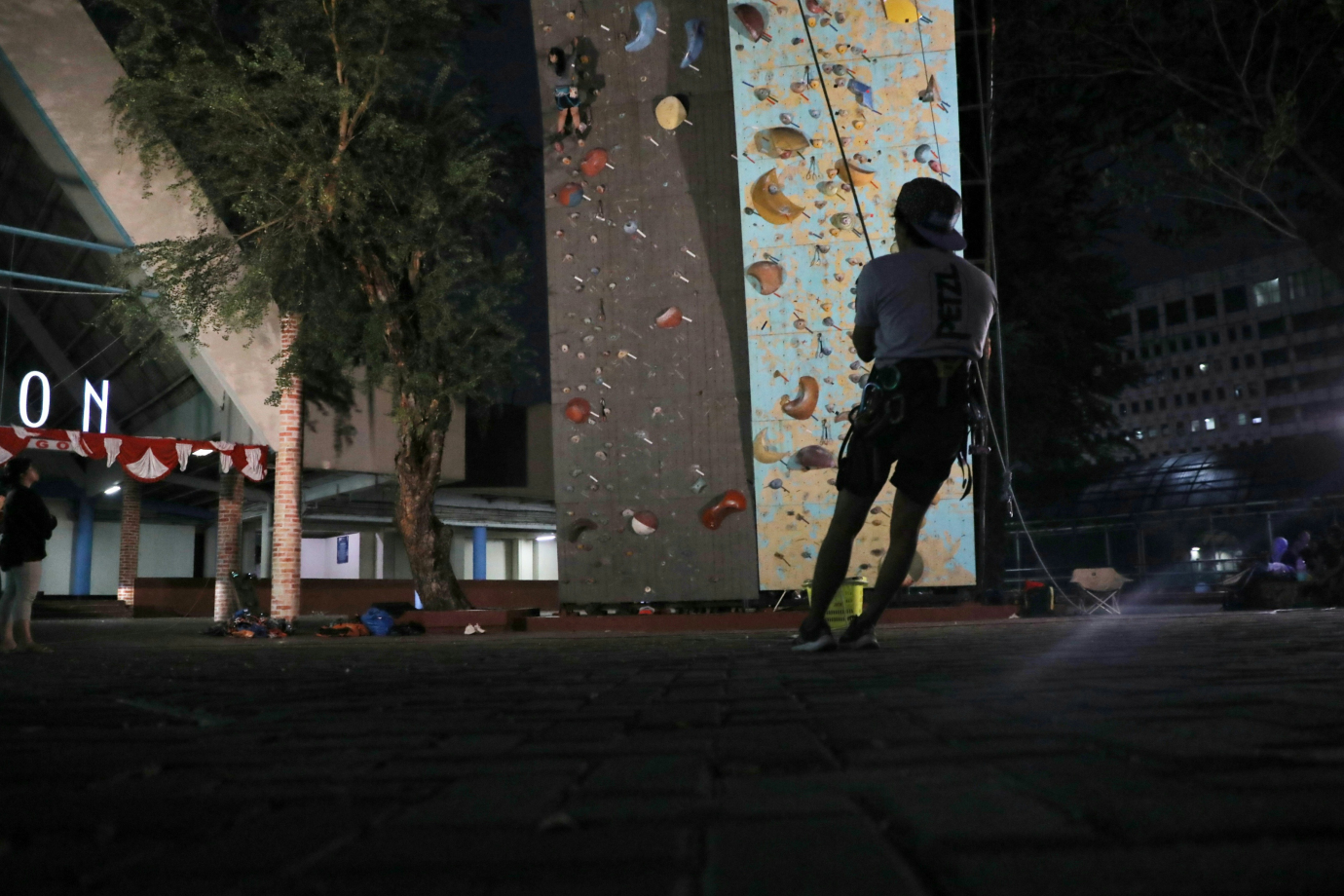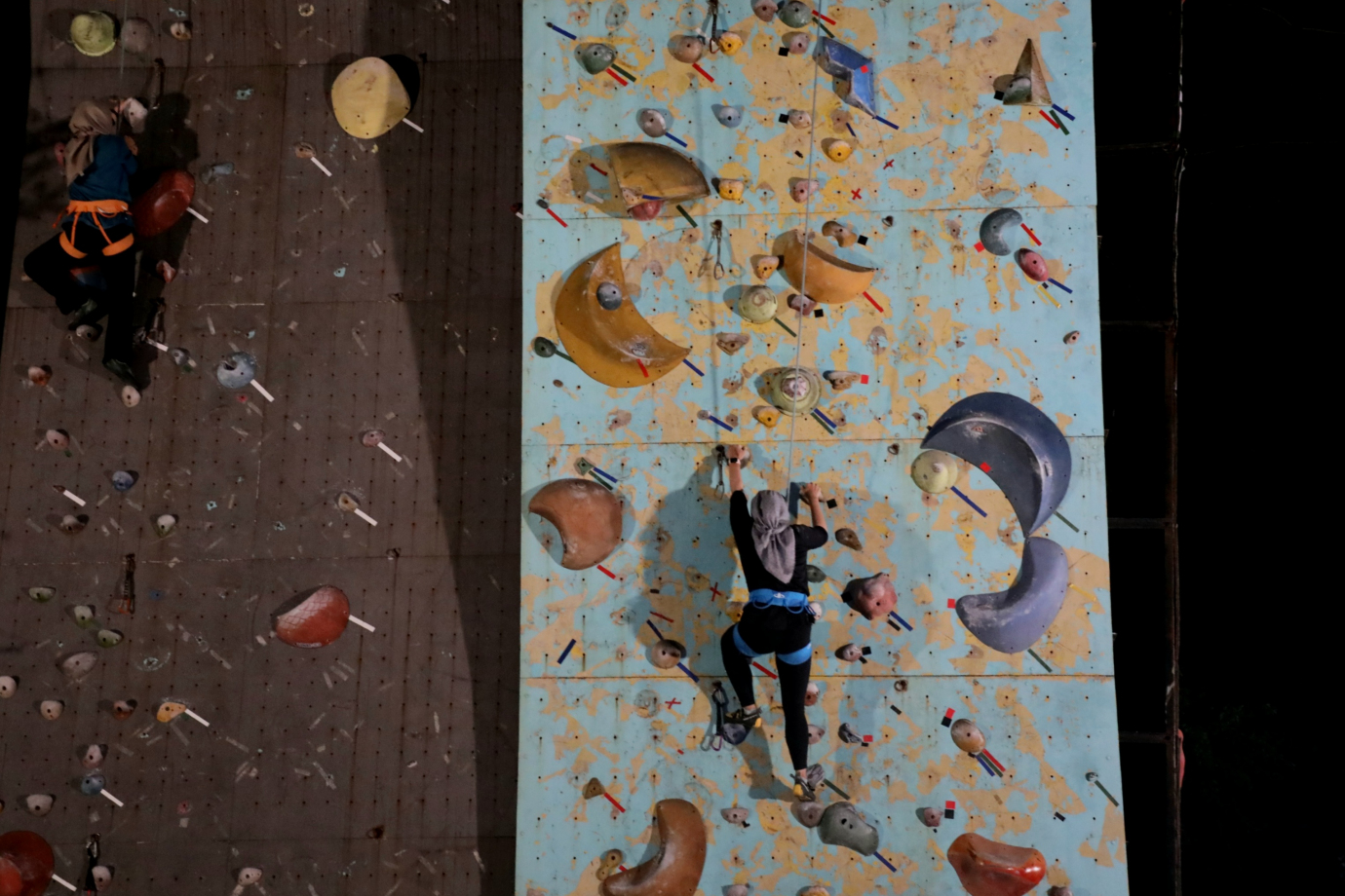 Sejumlah warga yang tergabung dalam komunitas Jakarta Climbers bermain panjat tebing di kawasan GOR Soemantri Brodjonegoro, Kuningan, Jakarta Selatan. Komunitas yang berdiri sejak tahun 2005 ini menjadi wadah bagi para pecinta olahraga ekstrim di DKI Jakarta dan sekaligus membuka kesempatan bagi masyarakat yang ingin mencoba olahraga ini.