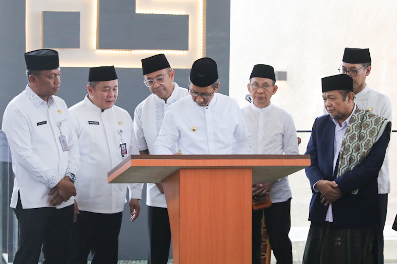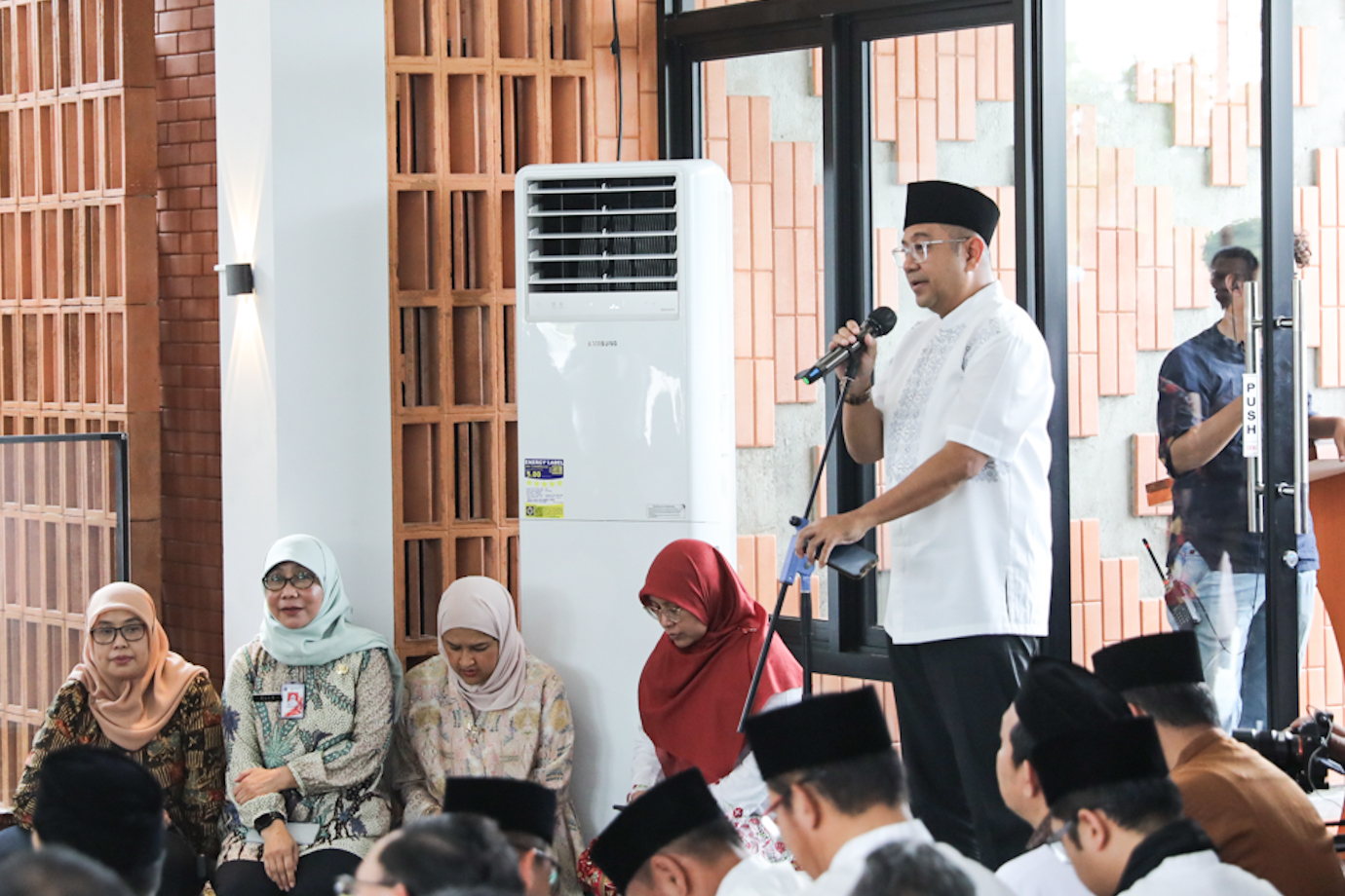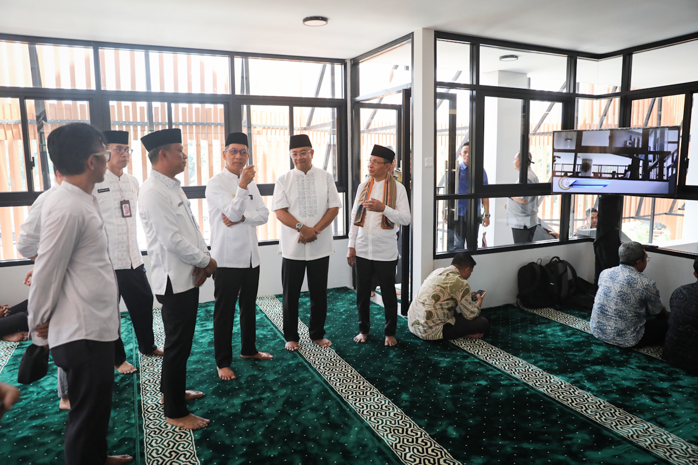 Penjabat (Pj) Gubernur DKI Jakarta, Heru Budi Hartono meresmikan Masjid Jami Ar-Raudhah di Jalan TB Simatupang, Pasar Minggu, Jakarta Selatan, Jumat (6/9). Sebelum peresmian masjid, Pj Gubernur juga meninjau Halte Transjakarta Simpang Ragunan Ar-Raudhah saat menuju lokasi menggunakan bus Transjakarta.