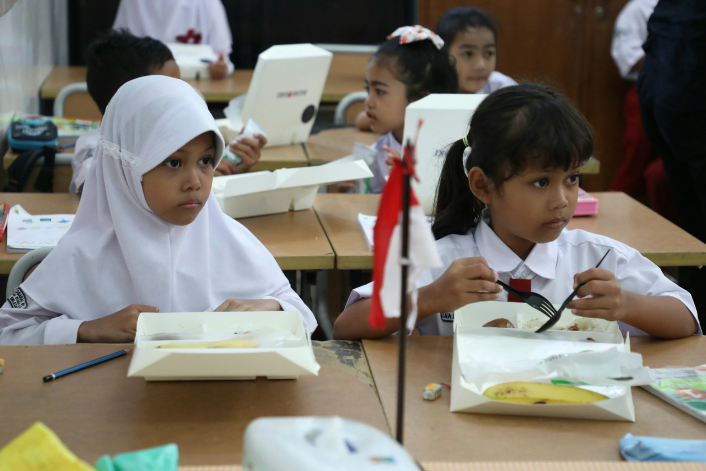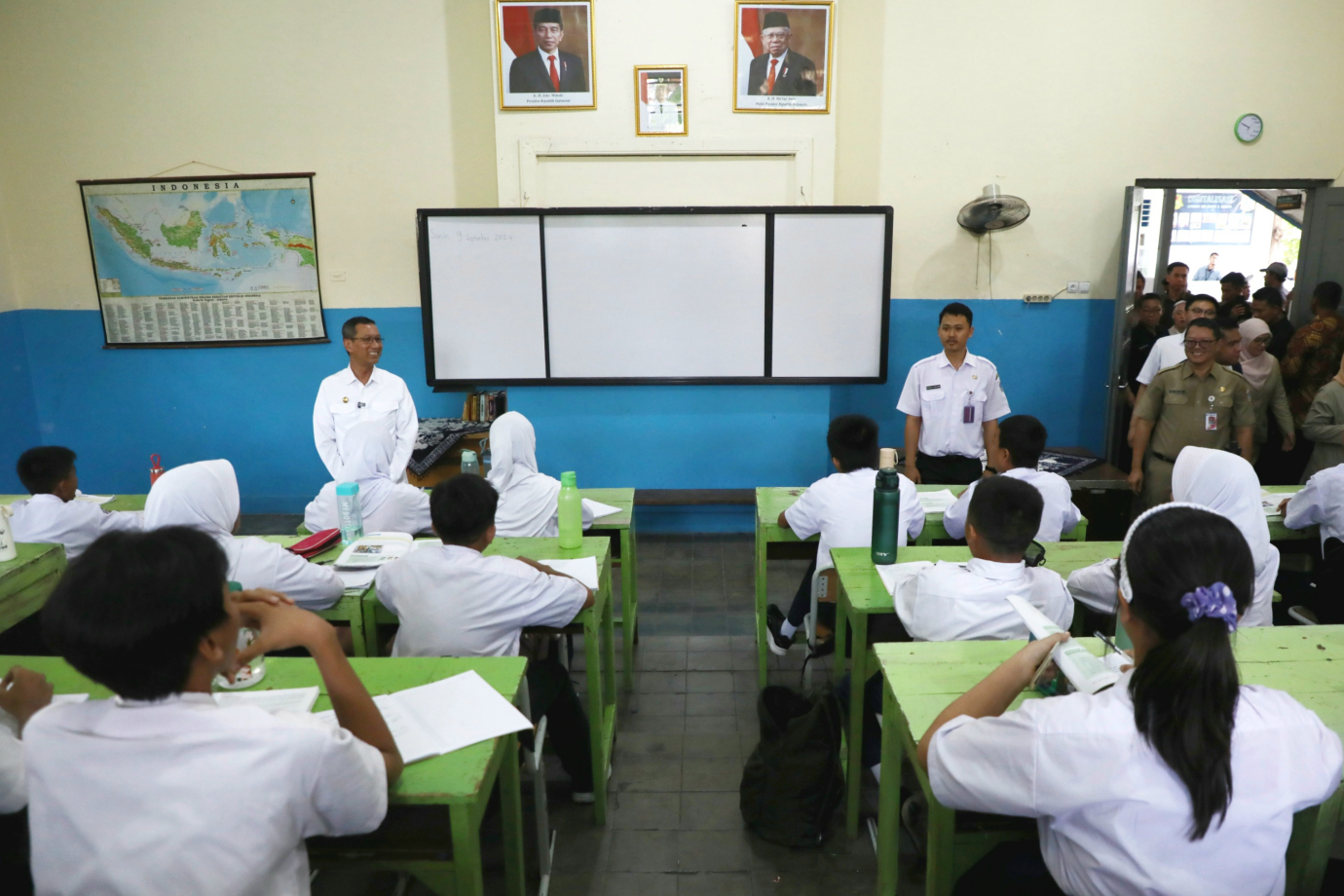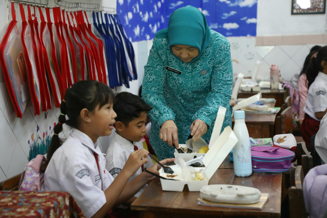 Penjabat ( Pj) Gubernur DKI Jakarta, Heru Budi Hartono didampingi Pj Ketua TP PKK DKI Jakarta, Mirdiyanti Heru meninjau kegiatan uji coba Makan Bergizi Gratis (MBG) di SDN 01 Manggarai dan SMPN 3 Jakarta, Kelurahan Manggarai, Kecamatan Tebet, Jakarta Selatan, Senin (9/9). Dalam kegiatan ini disediakan 1.500 pack makanan hasil kerjasama dengan Badan Usaha Milik Daerah (BUMD) PT Bank DKI dan Perumda Pasar Jaya.