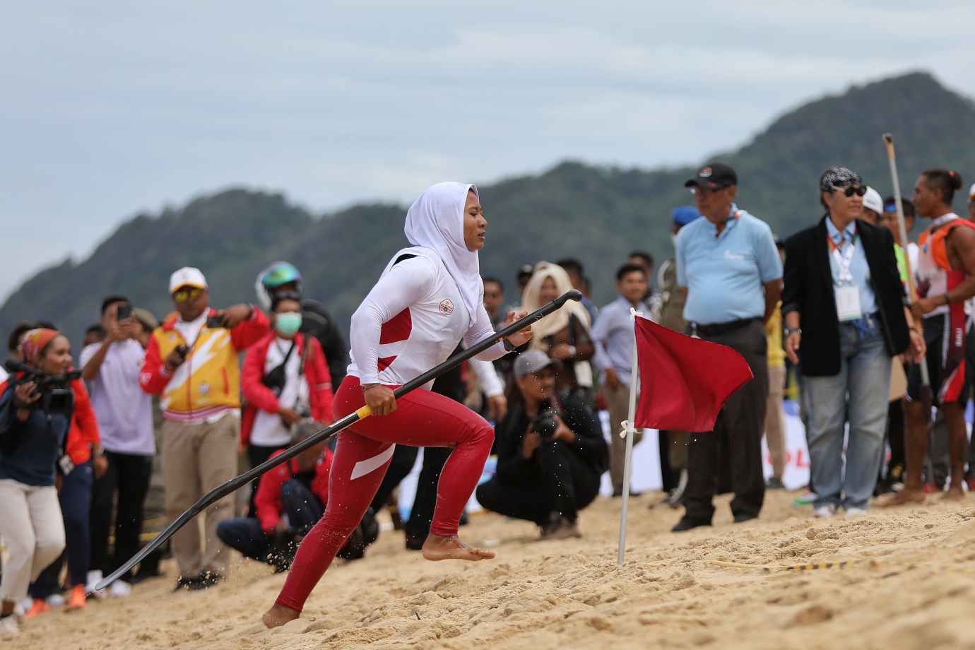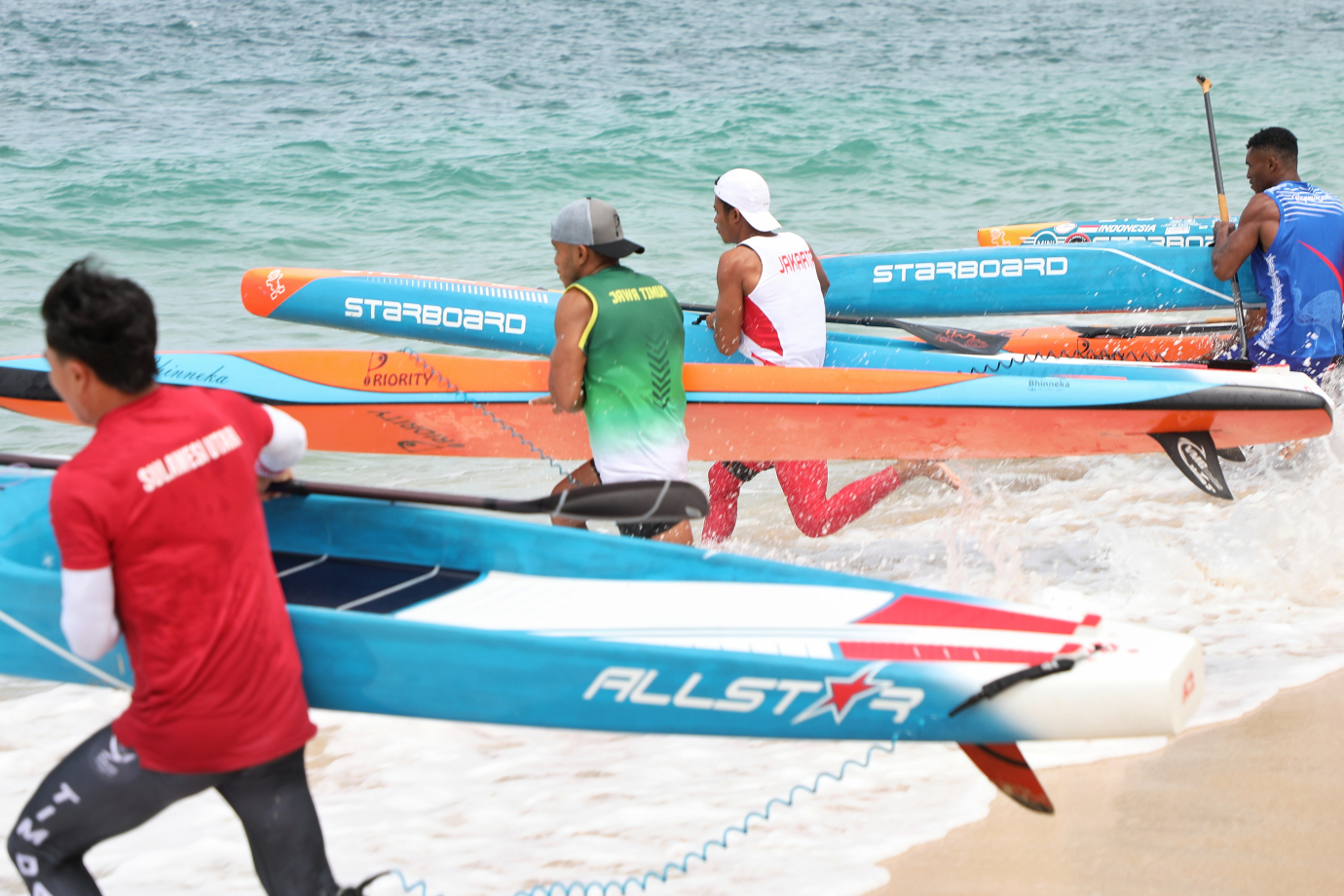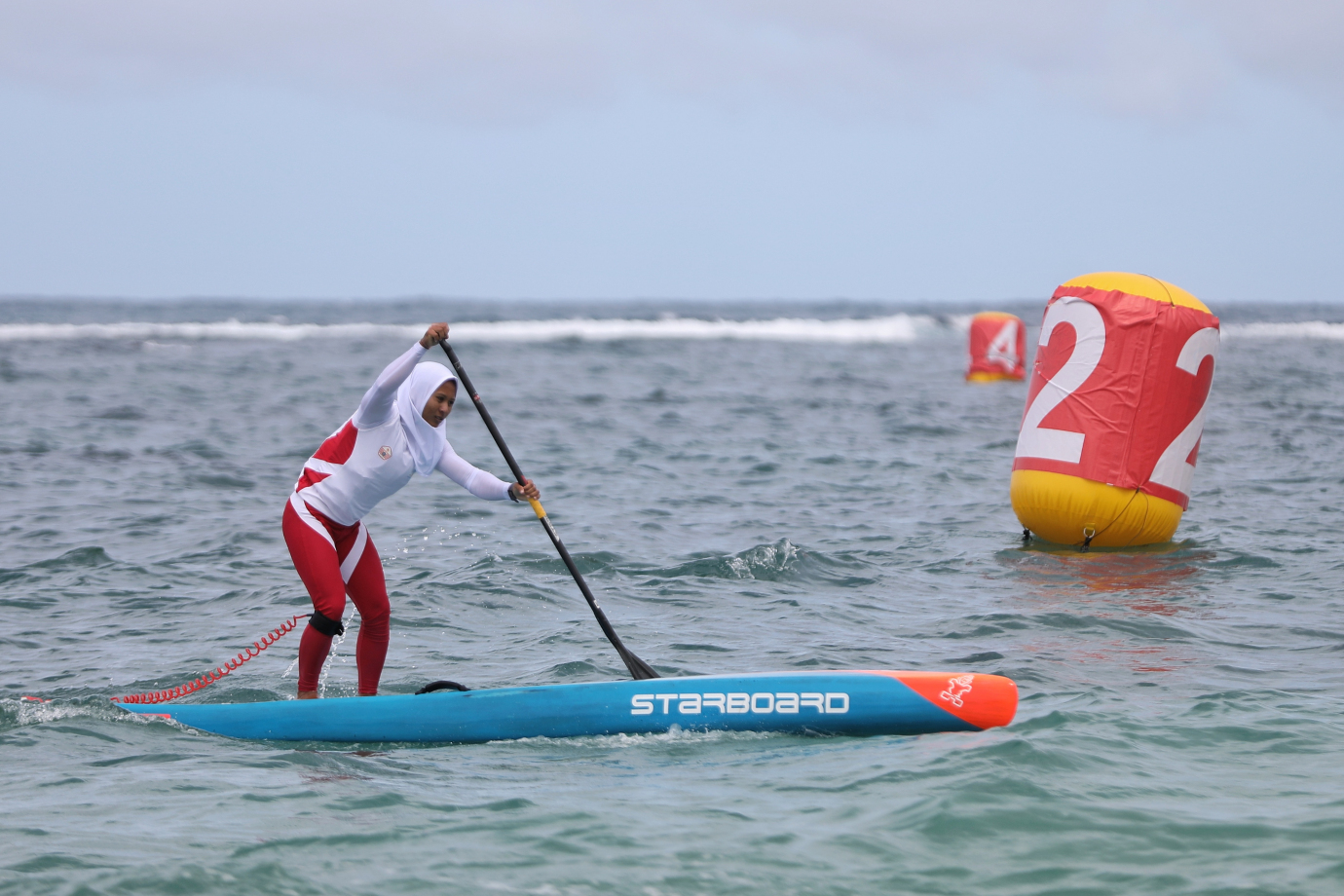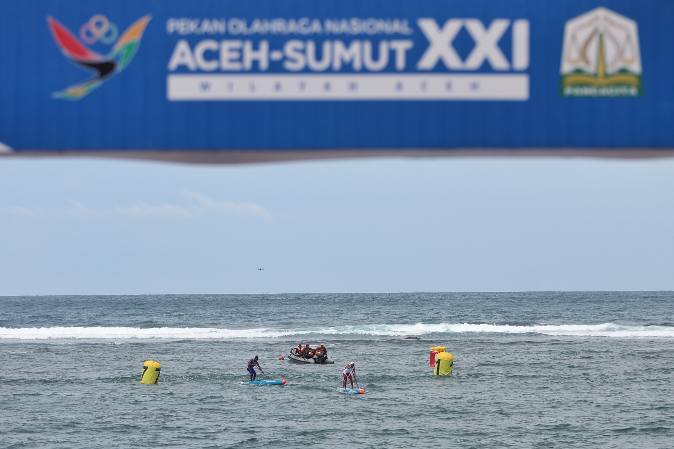 Dua atlet DKI Jakarta tampil di dua putaran final cabang olahraga dayung dengan nomor pertandingan Stand Up Paddle pada PON XXI Aceh-Sumut di Pulau Kapuk, Mon Ikeun, Lhoknga, Aceh, Senin (9/9). Dua atlet yang diwakili oleh Masrino pada nomer pertandingan Stand Up Paddle (MSUP) dan Aurel Faustasyah Febriana pada nomer pertandingan Stand Up Paddle (WSUP) harus puas berada di posisi dua atau meraih medali perak. #kabarpon2024