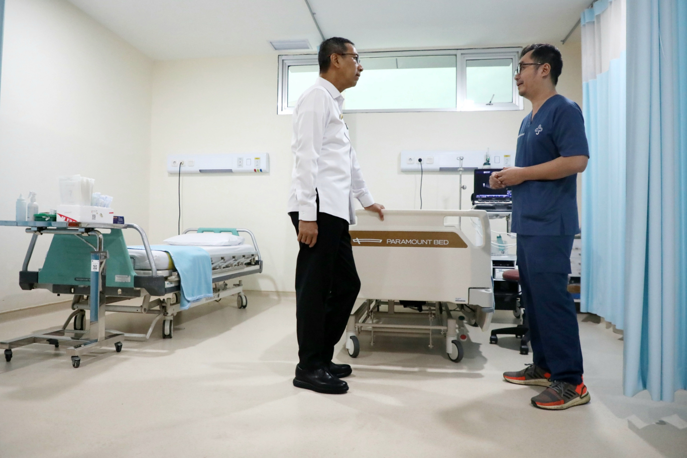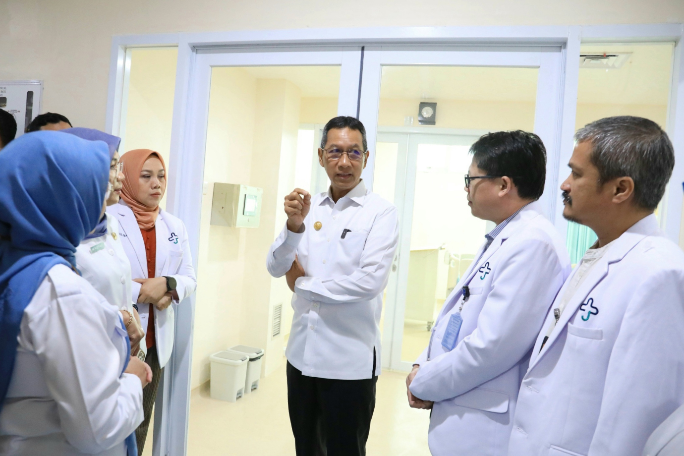 Penjabat (Pj) Gubernur DKI Jakarta, Heru Budi Hartono meninjau sejumlah fasilitas kesehatan di Rumah Sakit Umum Daerah (RSUD) Tarakan, Jalan Kyai Caringin, Cideng, Gambir, Jakarta Pusat, Rabu (11/9). Dalam kunjungan ini Pj Gubernur melihat secara langsung fasilitas layanan kesehatan mulai dari fasilitas layanan Tuberculosis Multi Drug Resistance (TB MDR), layanan luka bakar terpadu dan layanan stroke.