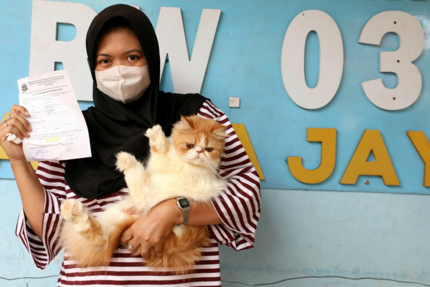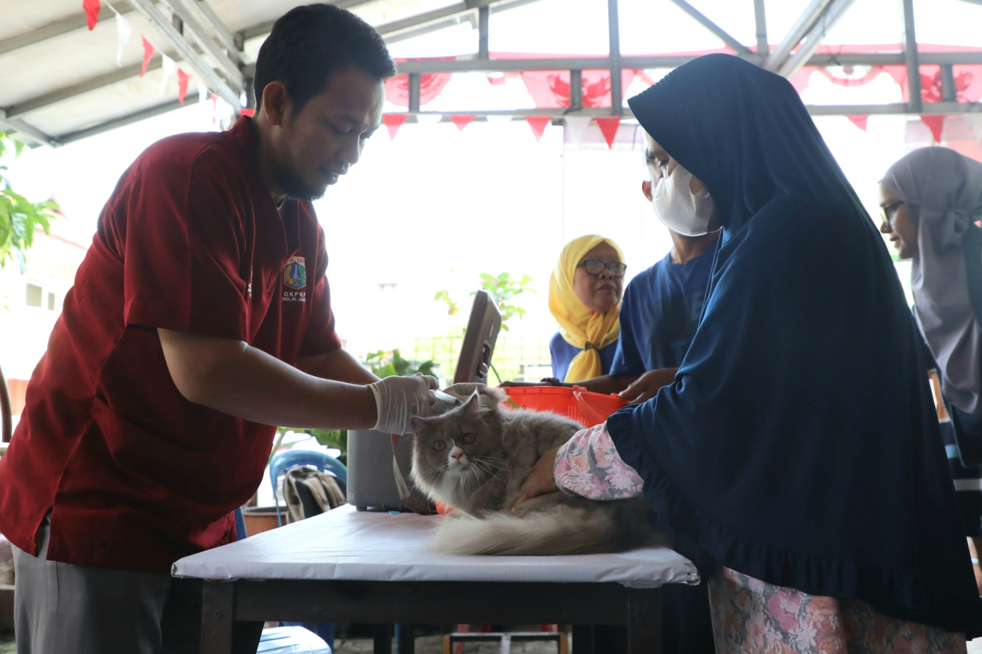 Suku Dinas Ketahanan Pangan, Kelautan dan Pertanian (Sudin KPKP) Jakarta Timur menggelar vaksinasi hewan penular rabies (HPR) di Sekretariat RW 03, Malaka Jaya, Duren Sawit, Jakarta Timur, Kamis (12/9). Dalam kegiatan ini sebanyak 43 ekor HPR berhasil di vaksinasi terdiri dari 38 ekor kucing dan lima ekor anjing.