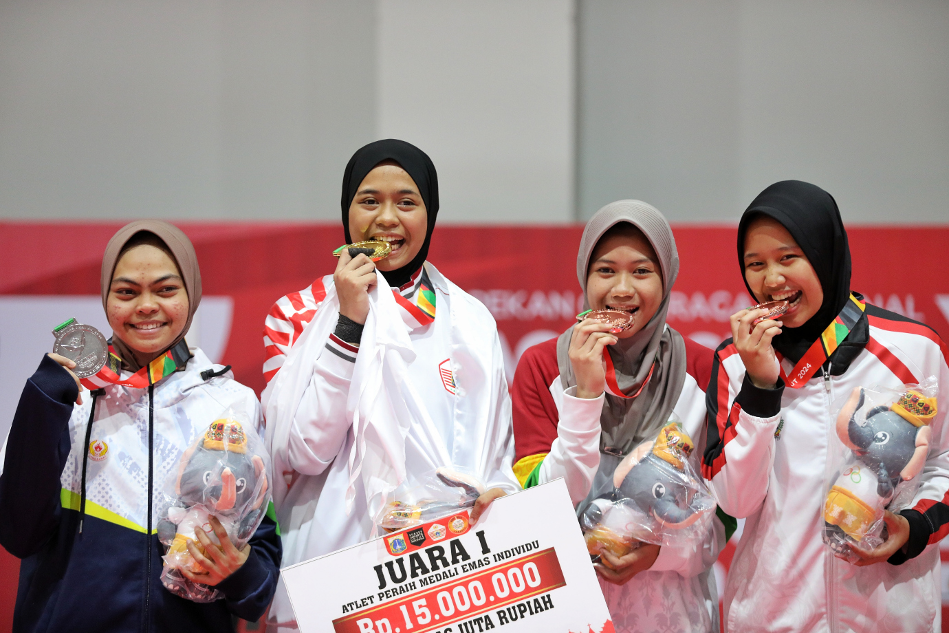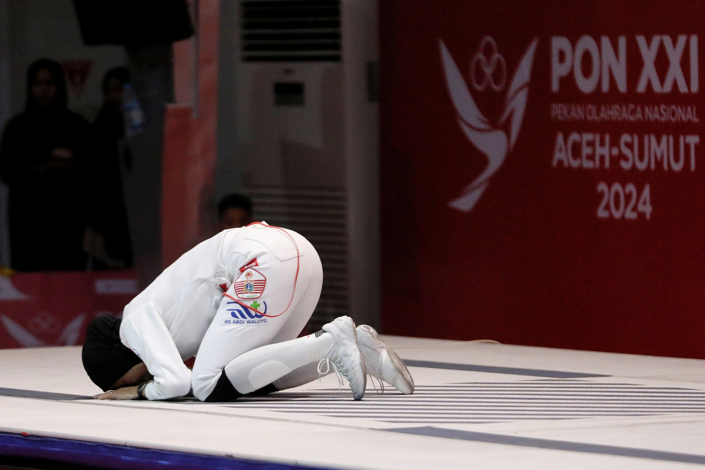 Aditya Rizki Pramudita (Tya) berhasil menyumbangkan medali emas untuk DKI Jakarta melalui cabang olahraga anggar di nomor pertandingan Degen Perorangan pada PON XXI Aceh-Sumut yang digelar di Hall Anggar Komplek SHB, Banda Aceh, Kamis (12/9). Tya tampil gemilang dengan mengalahkan lawannya asal Jawa Barat dengan skor 15-8 sekaligus memastikan emas pertama bagi cabor anggar DKI Jakarta di ajang ini. #kabarpon2024