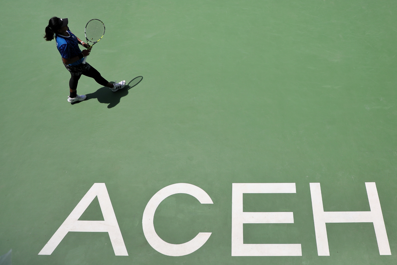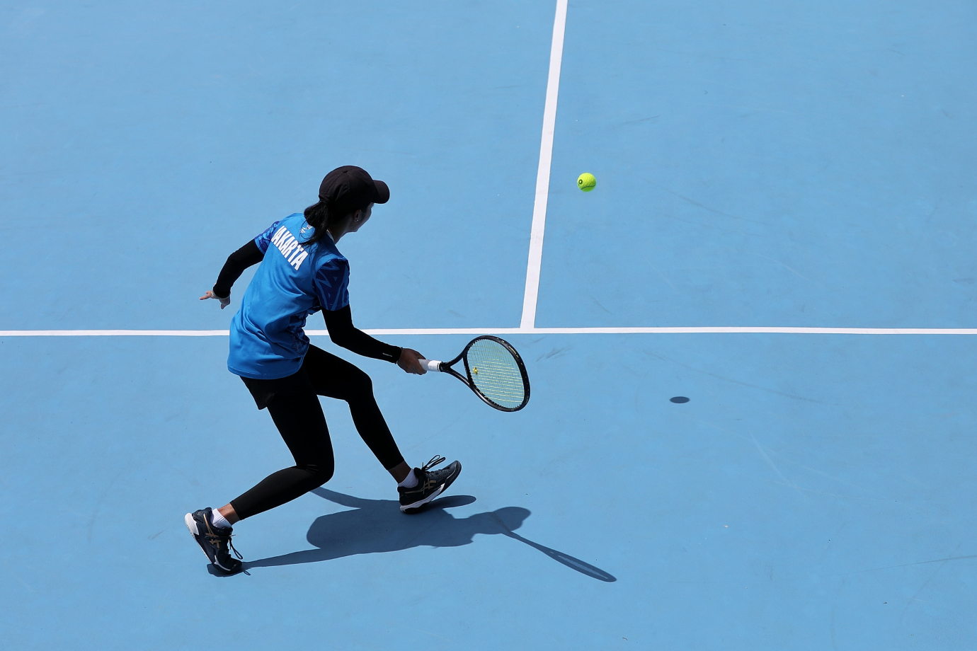 Tim tenis DKI Jakarta berhasil melaju ke babak final nomor beregu putri setelah mengalahkan tim Papua Barat di semifinal PON XXI Aceh-Sumut 2024 di Stadion Harapan Bangsa, Banda Aceh, Jumat (13/9). Dalam final nanti tim tenis DKI Jakarta akan berhadapan dengan tim Jawa Timur yang menjadi lawan terakhir dalam perebutan medali emas. #kabarpon2024