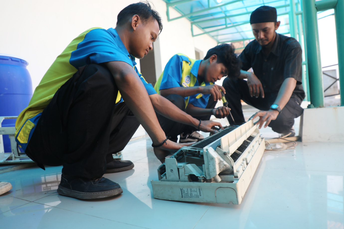 Pusat Pelatihan Kerja Daerah (PPKD) Jakarta Utara menggelar pelatihan kerja dengan sistem jemput bola mobile training Unit (MTU) kejuruan teknik pendingin di sanggar kegiatan belajar (SKB) 03 Jakarta, Jalan Bendungan Melayu, Tugu Selatan, Koja, Jakarta Utara, Senin (30/9). Kegiatan digelar selama 20 hari kerja, dimulai dari 18 September hingga 16 Oktober 2024 diikuti 20 peserta terdiri dari 15 murid SKB 03 dan lima warga Jakarta Utara.