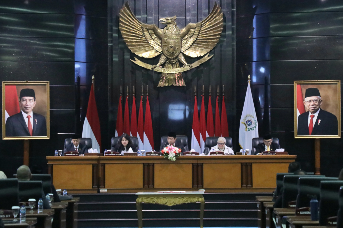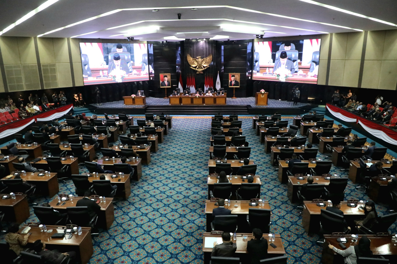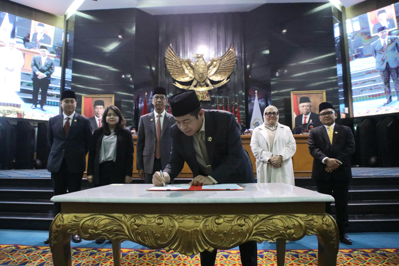 Penjabat (Pj) Gubernur DKI Jakarta, Heru Budi Hartono menghadiri rapat paripurna Dewan Perwakilan Rakyat Daerah (DPRD) Provinsi DKI Jakarta di Gedung DPRD DKI Jakarta, Selasa (8/10). Rapat Paripurna beragendakan pembukaan masa sidang dan masa reses pertama Pimpinan dan Anggota DPRD Provinsi DKI Jakarta Tahun Anggaran 2024, penandatanganan pakta integritas Kebijakan Umum APBD serta Prioritas dan Plafon Anggaran Sementara APBD (KUA-PPAS) Tahun Anggaran 2025 antara Penjabat Gubernur dengan Pimpinan DPRD DKI Jakarta dan penetapan Alat Kelengkapan DPRD DKI Jakarta masa jabatan 2024-2029.