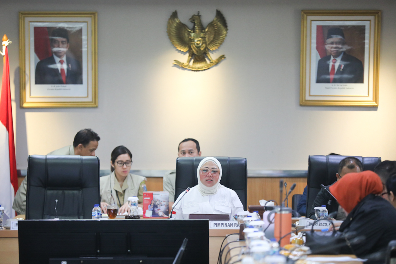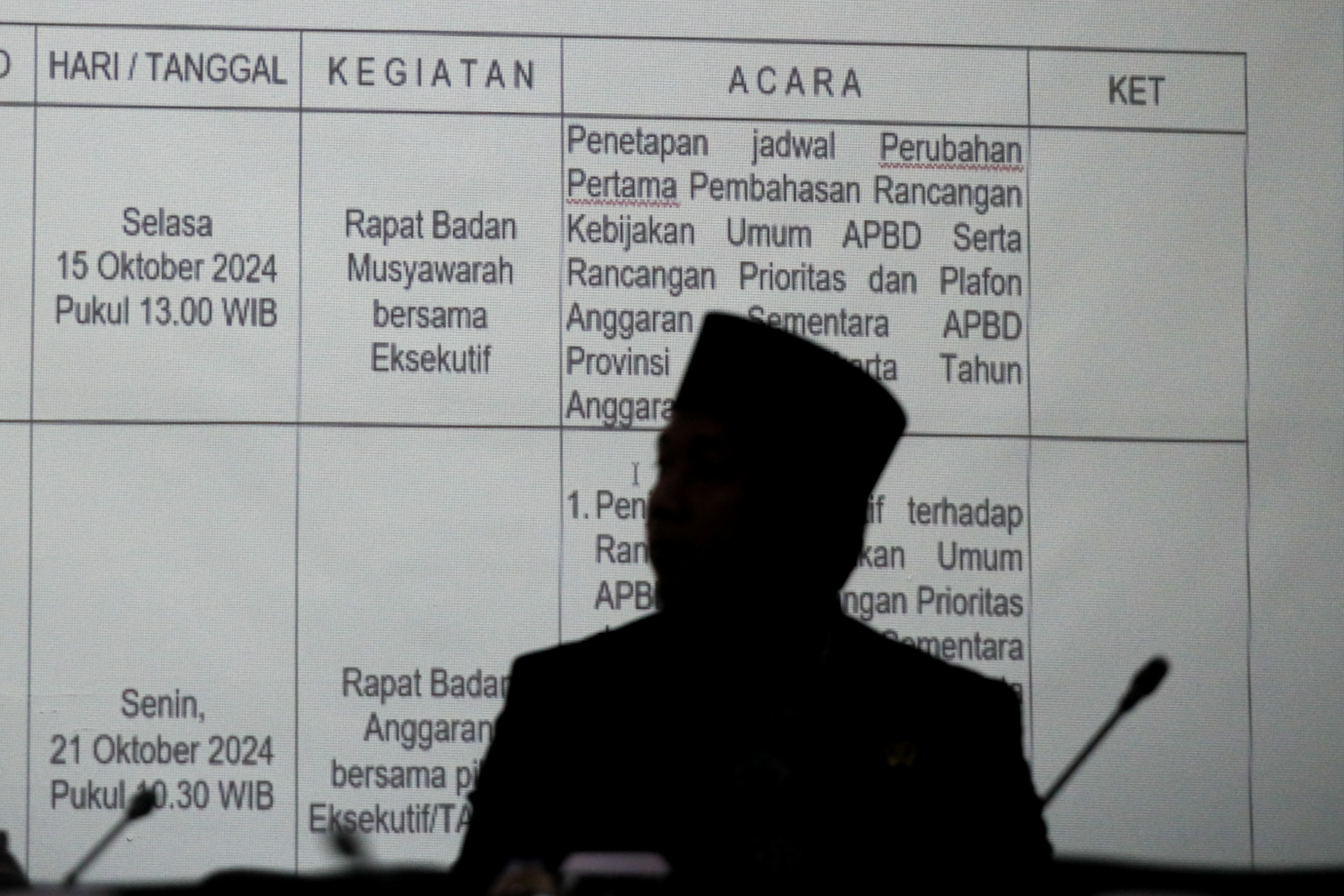 Wakil Ketua DPRD DKI Jakarta, Rani Mauliani memimpin rapat Badan Musyawarah DPRD DKI bersama eksekutif Pemprov DKI Jakarta di Ruang Rapat Serbaguna Gedung DPRD DKI, Gambir, Jakarta Pusat, Selasa (15/10). Rapat bersama antara Badan Musyawarah dan SKPD Pemprov DKI tersebut membahas perubahan pertama penetapan jadwal kegiatan pimpinan dan anggota DPRD DKI pada bulan Oktober-Desember 2024.