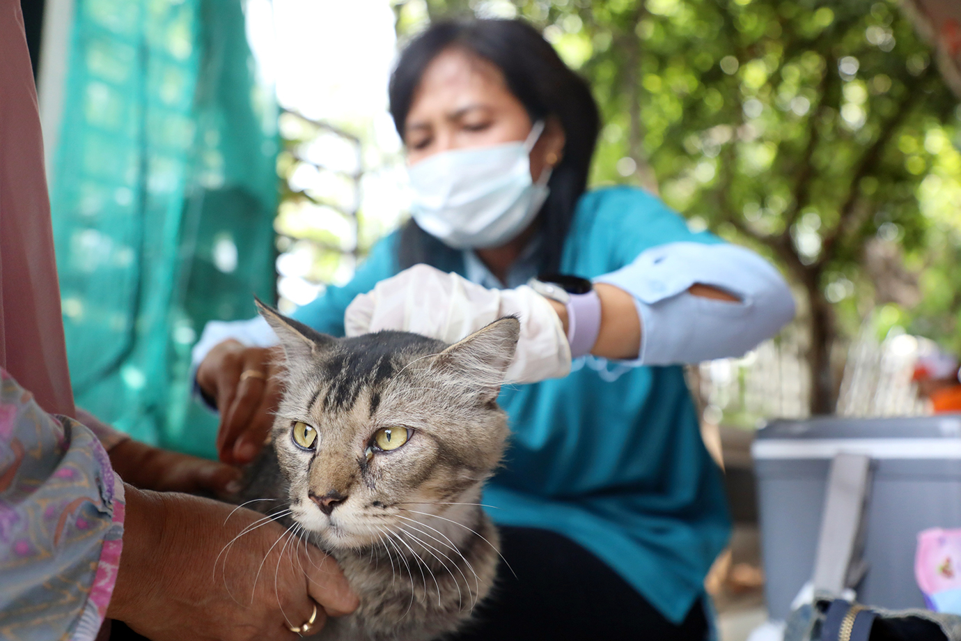 Suku Dinas Ketahanan Pangan, Kelautan dan Pertanian (KPKP) Jakarta Timur menggelar layanan vaksinasi Hewan Penular Rabies (HPR) di Kantor Kelurahan Kebon Manggis, Matraman, Kamis (17/10). Dalam kegiatan ini 13 ekor HPR yang terdiri dari lima ekor anjing dan delapan ekor kucing berhasil divaksinasi.