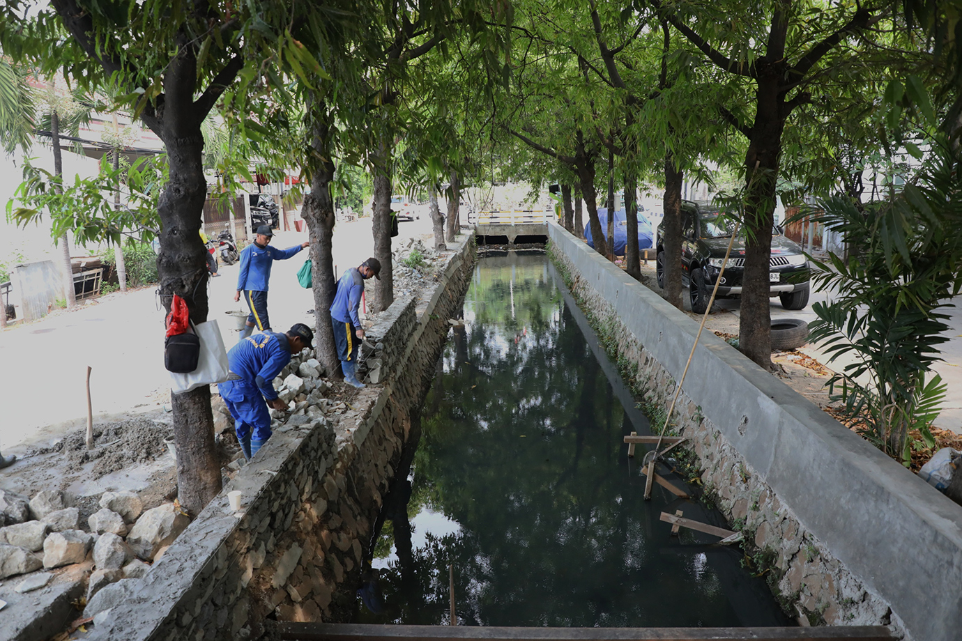 Peninggian turap saluran yang memiliki panjang 79 meter dan lebar 50 sentimeter ini dilakukan untuk menghindari luapan air saat musim penghujan.