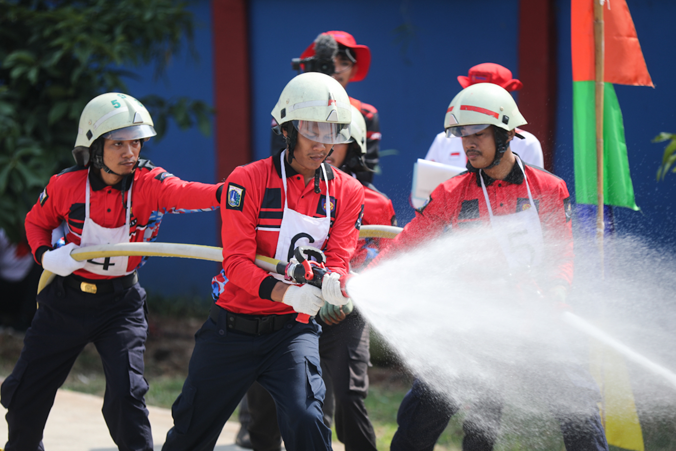 Redkar Jaktim Unjuk Ketangkasan Memadamkan Api