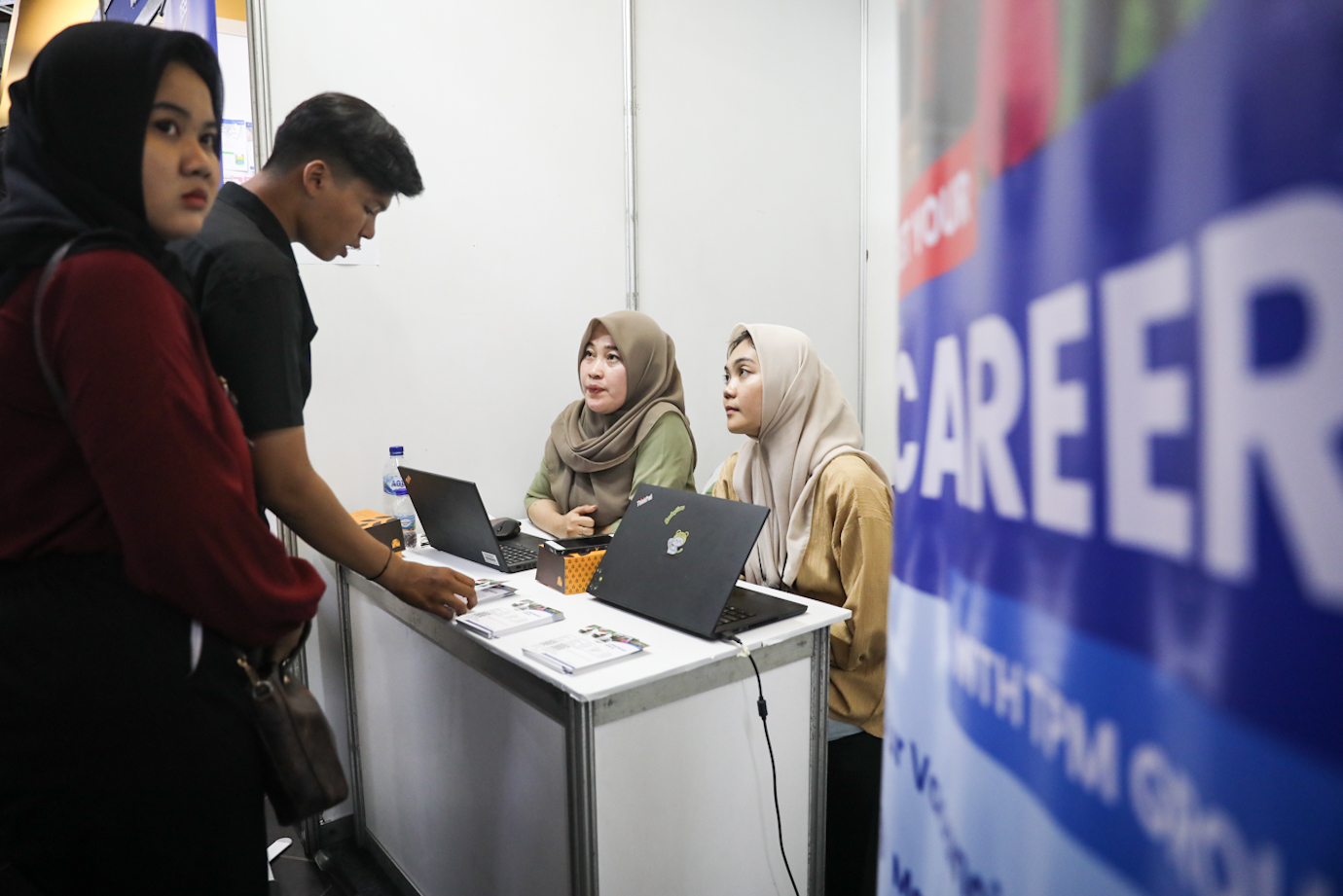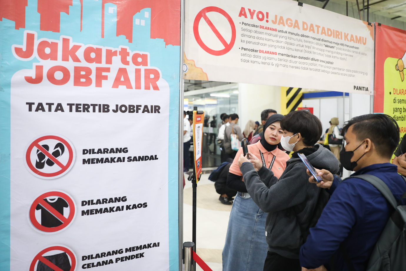 Suku Dinas Tenaga Kerja, Transmigrasi dan Energi (Sudin Nakertransgi) Jakarta Pusat menggelar pameran bursa kerja atau Jakarta Job Fair 2024 di pusat perbelanjaan ITC Cempaka Mas, Kemayoran, Jakarta Pusat, Rabu (23/10). Bursa kerja atau Jakarta Job Fair ini diikuti 40 perusahaan swasta dan balai latihan kerja selama dua hari pada 23-24 Oktober 2024.