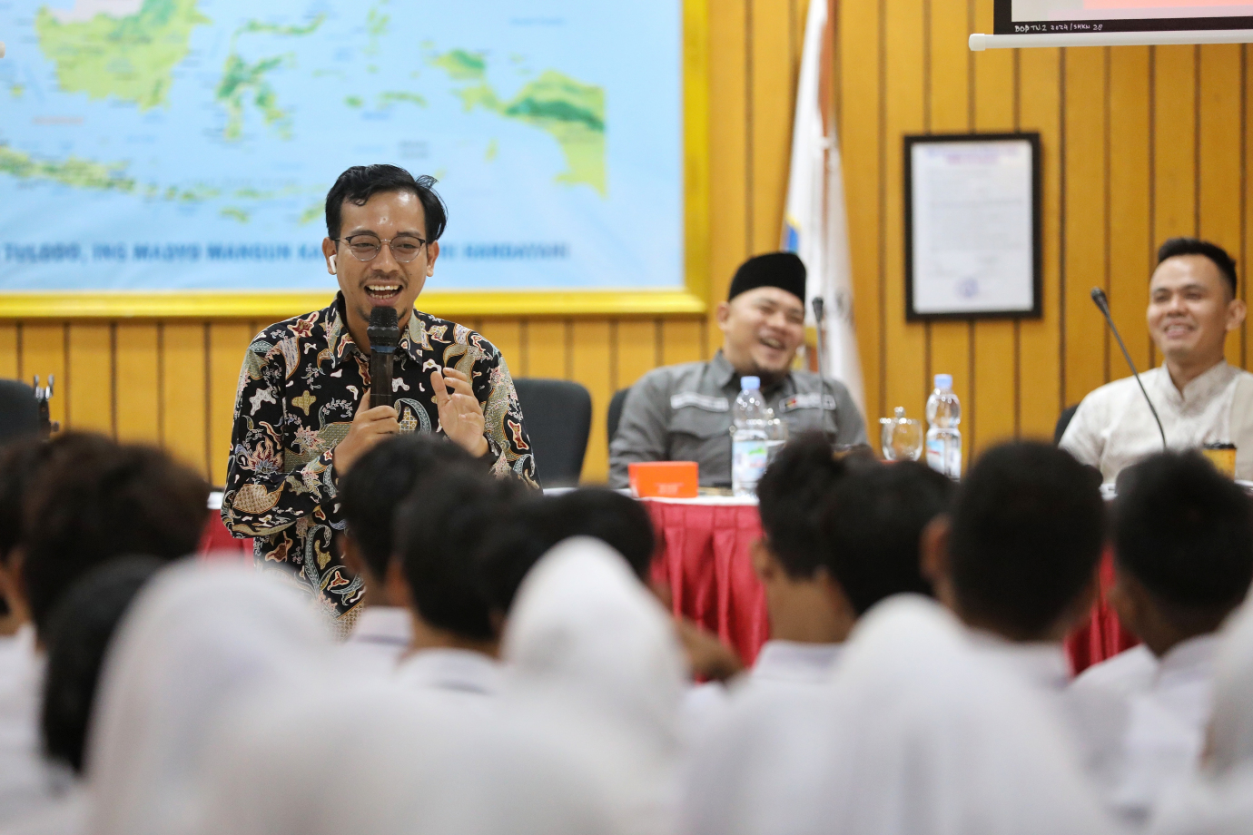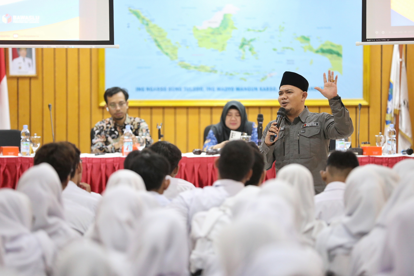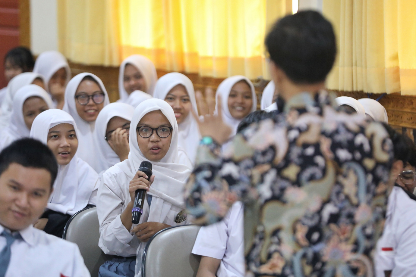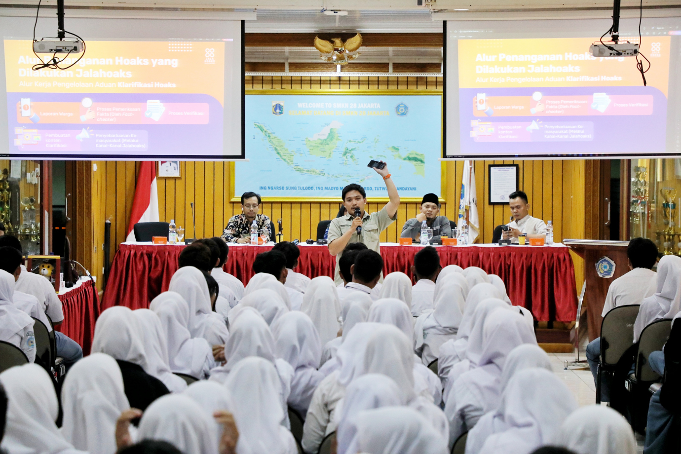 Media resmi Pemprov DKI Jakarta menggerlar kegiatan Ngobrol Bareng Beritajakarta, KPU dan Bawaslu Provinsi DKI Jakarta dalam rangka menghadapi penyelenggaraan pemilu kepala daerah Gubernur dan Wakil Gubernur DKI Jakarta tahun 2024 di SMKN 28 Jakarta, Cilandak Barat, Cilandak, Jakarta Selatan, Senin (28/10). Dengan adanya kegiatan sosialisasi ini diharapkan para pemilih pemula yang mayoritas pelajar dapat menyumbangkan hak pilihnya dalam kontestasi Pilkada 2024 dengan maksimal.