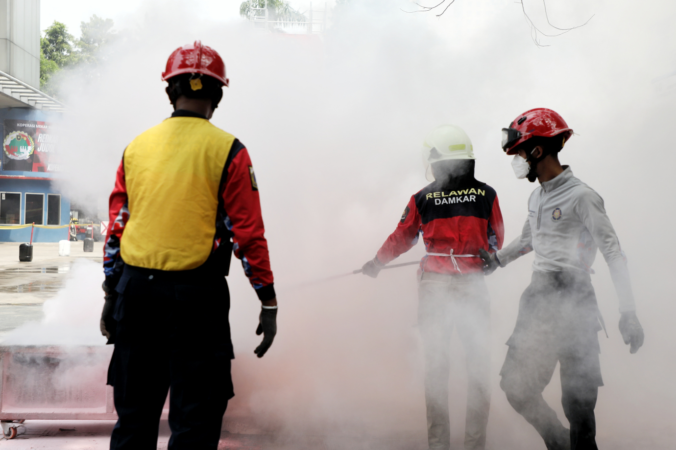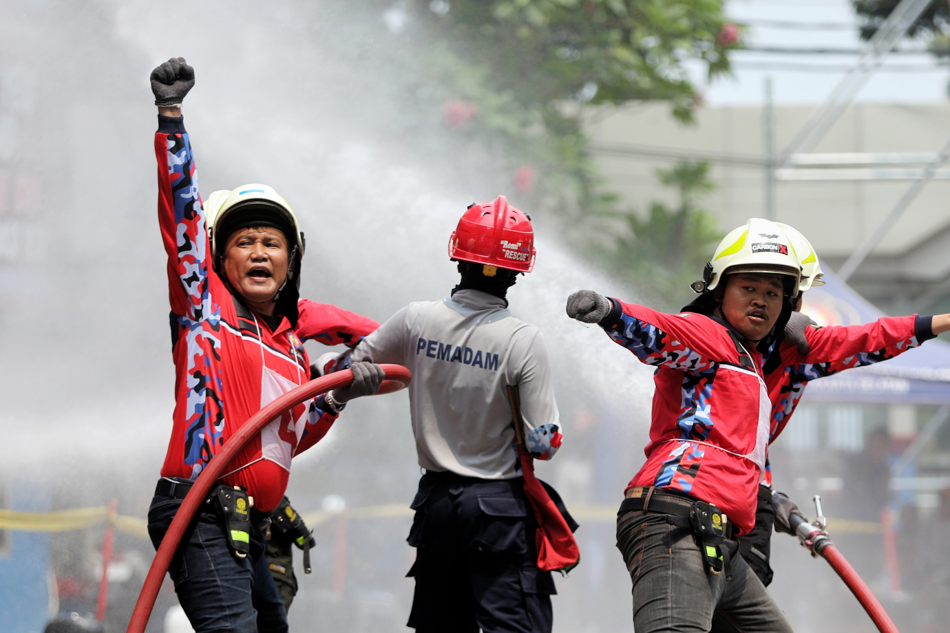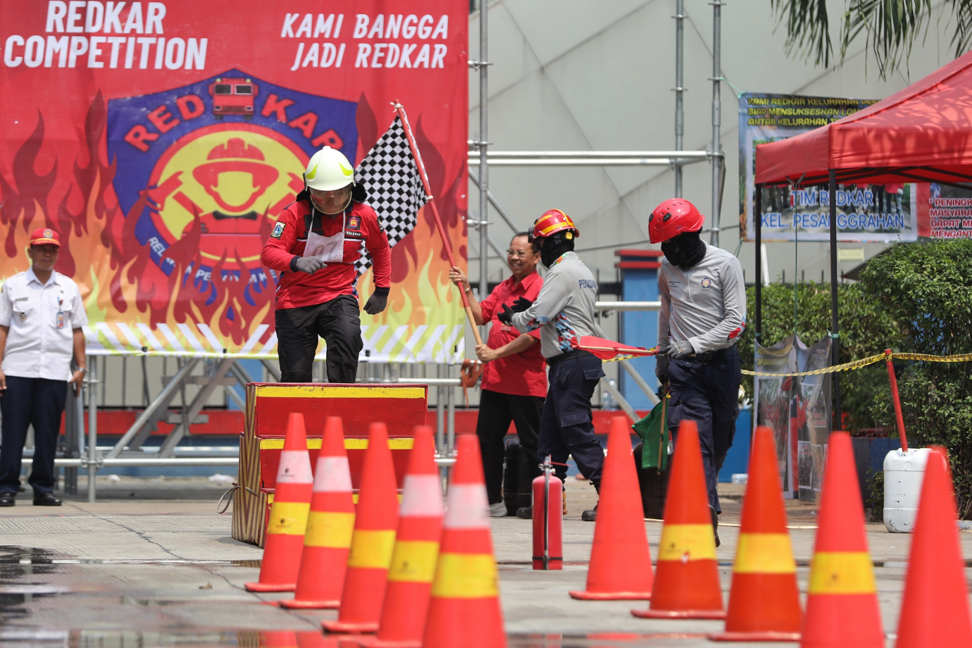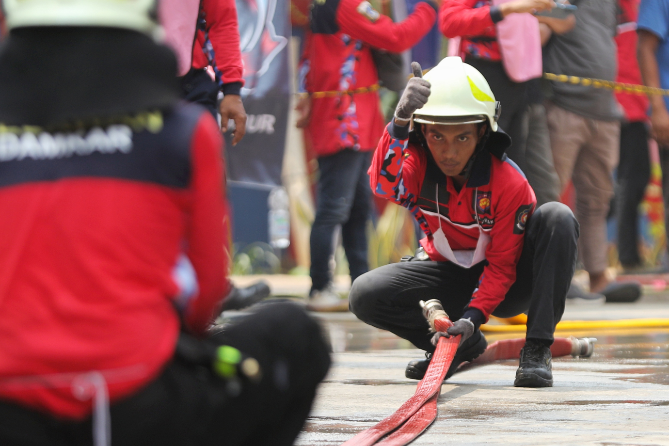 Relawan Pemadam Kebakaran (Redkar) mengikuti lomba ketangkasan di Kantor Suku Dinas Penanggulangan Kebakaran dan Penyelamatan (Gulkarmat) Jakarta Selatan, Pondok Pinang, Kebayoran Lama, Jakarta Selatan, Rabu (30/10). Lomba ketangkasan memadamkan api ini diikuti 650 Redkar dari 65 kelurahan se-Jakarta Selatan akan berlangsung hingga 31 Oktober 2024.